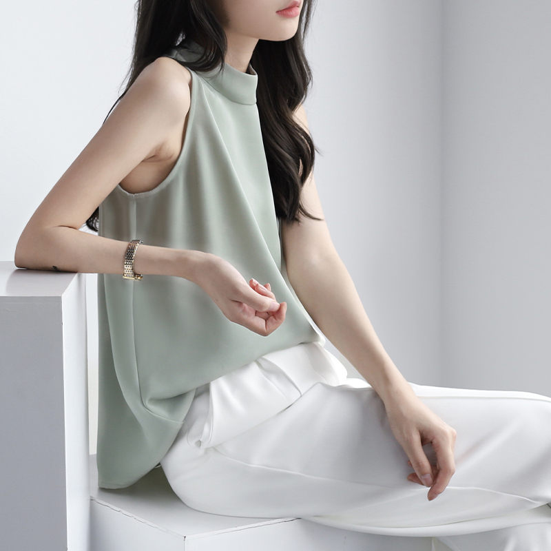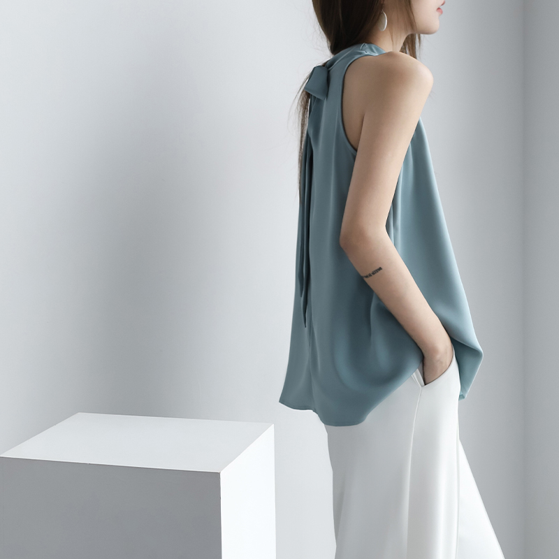 Осенняя майка топ без рукавов, свободный крой, французский стиль, эффект подтяжки