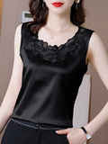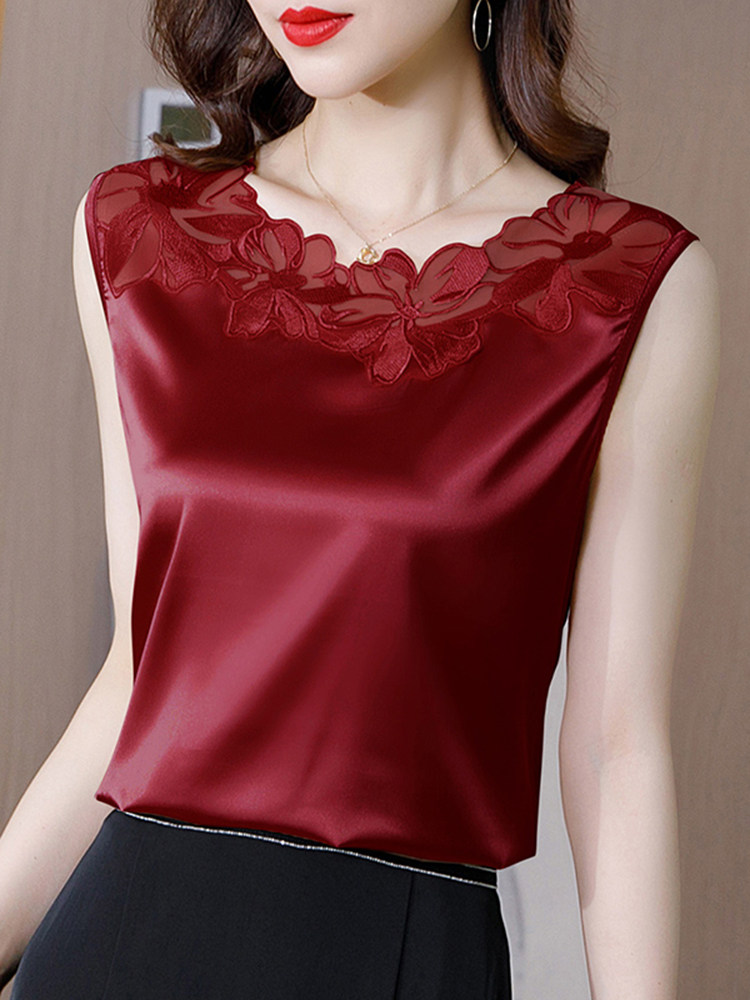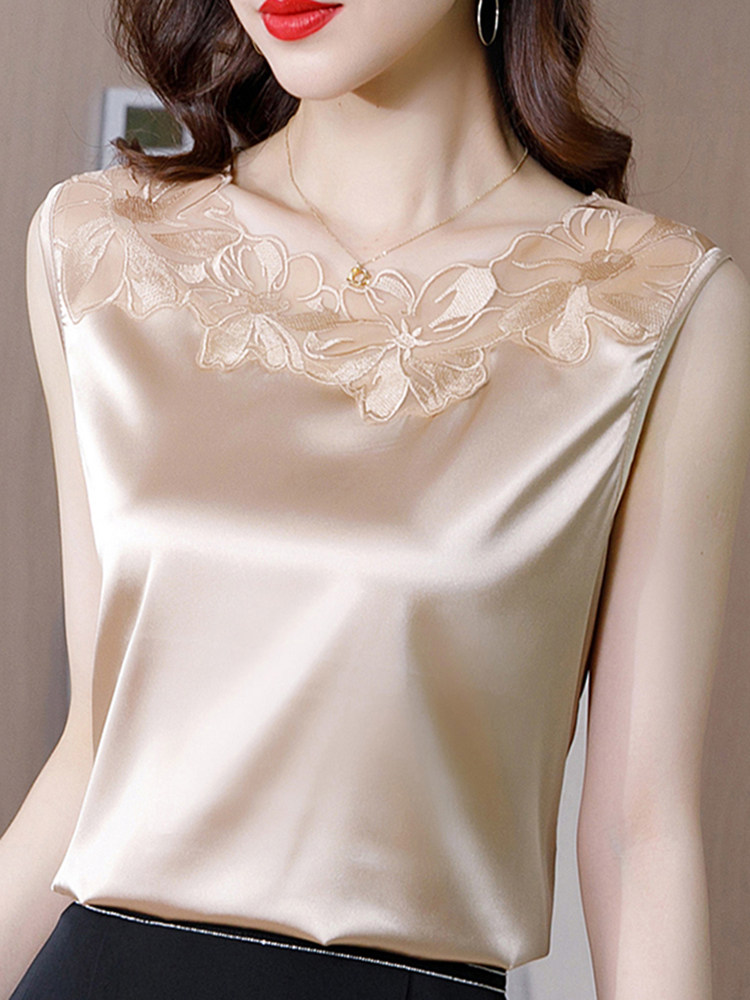 Кружевной шелковый топ с чашечками, майка топ, базовый костюм, футболка без рукавов, кружевное платье, свободный крой