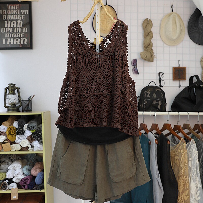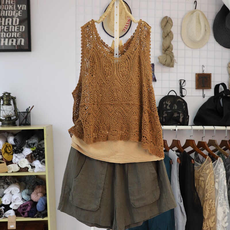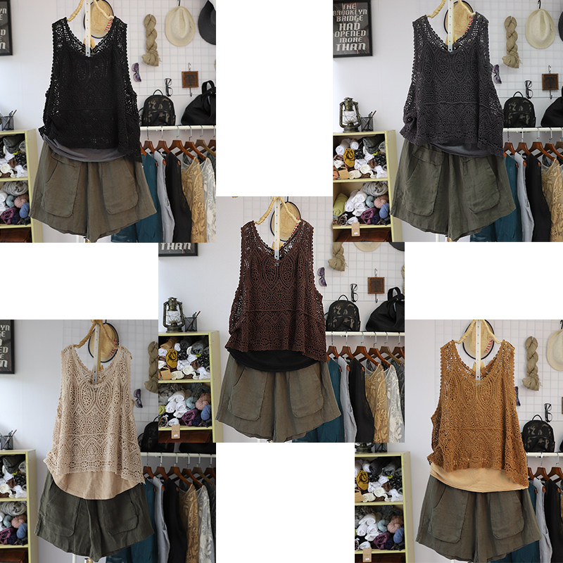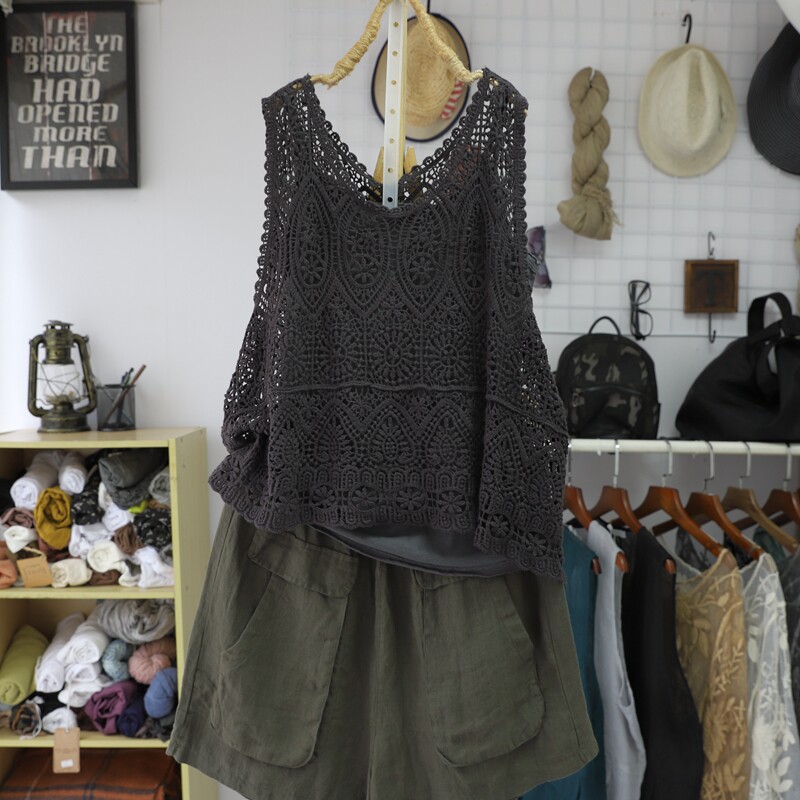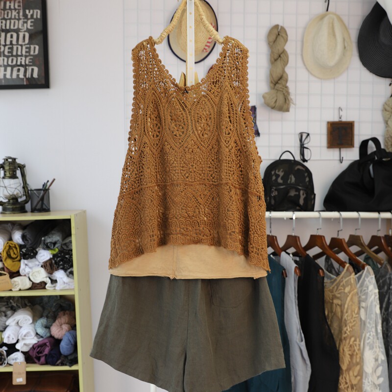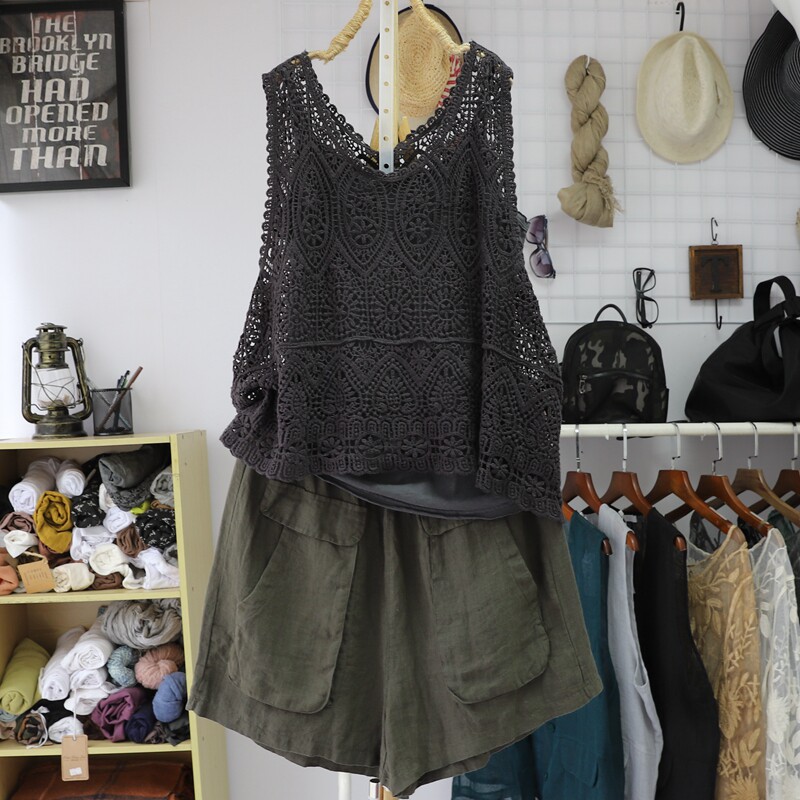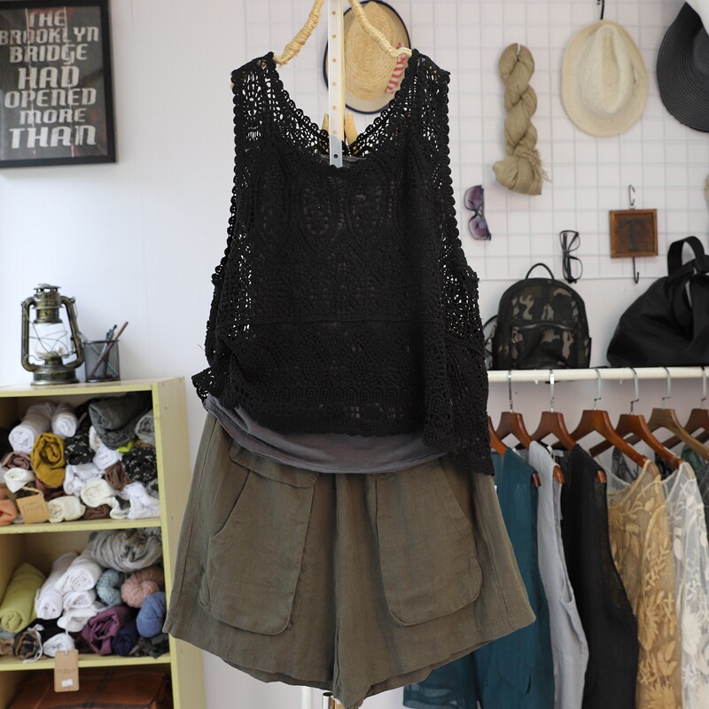 Летний ретро жилет, трикотажная тонкая футболка без рукавов, свободный крой, из хлопка и льна