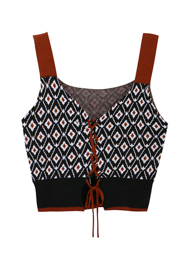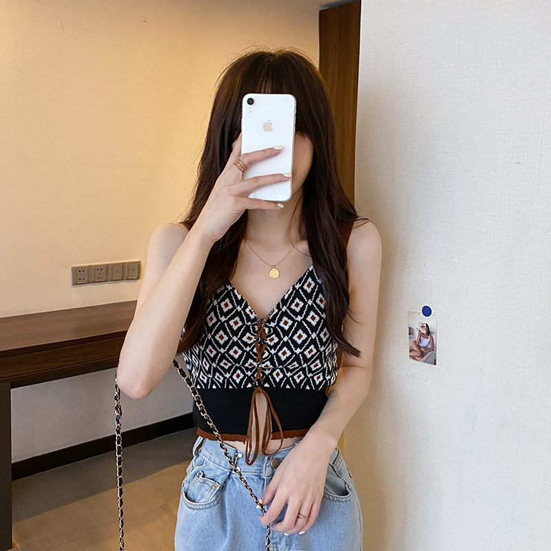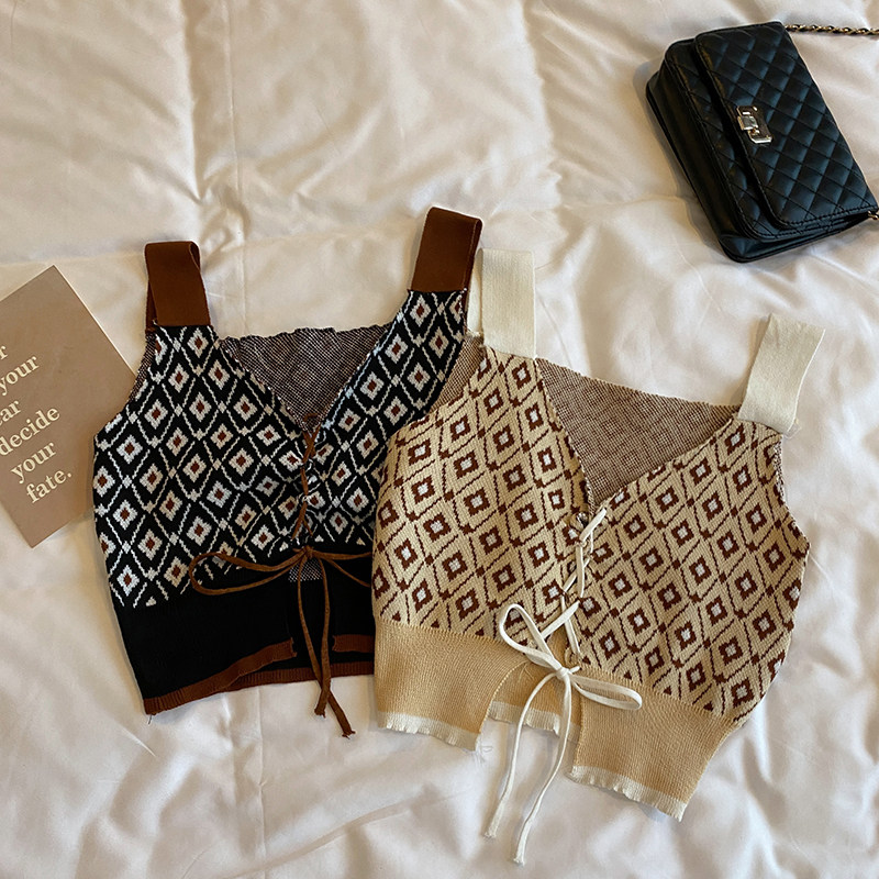 Трикотажная зимняя майка топ, короткий бюстгальтер-топ, на шнурках, французский стиль