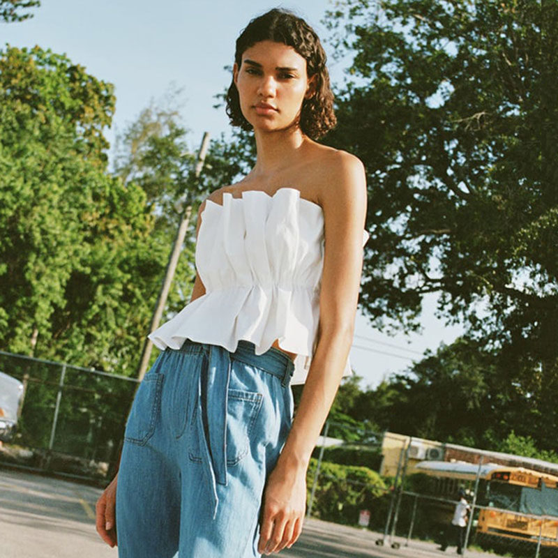 Летний белый приталенный бюстгальтер-топ, эффект подтяжки
