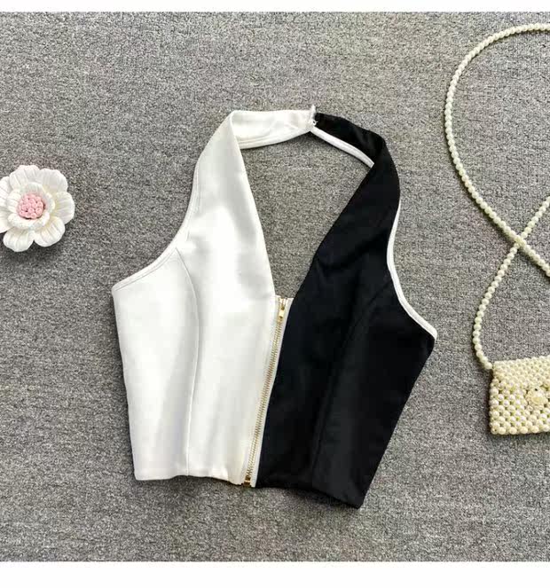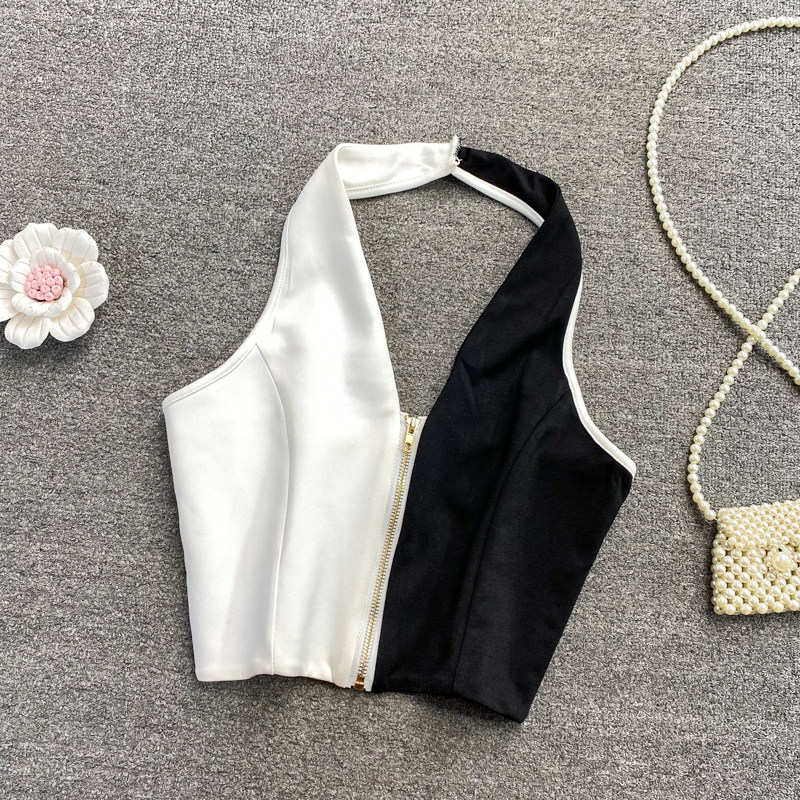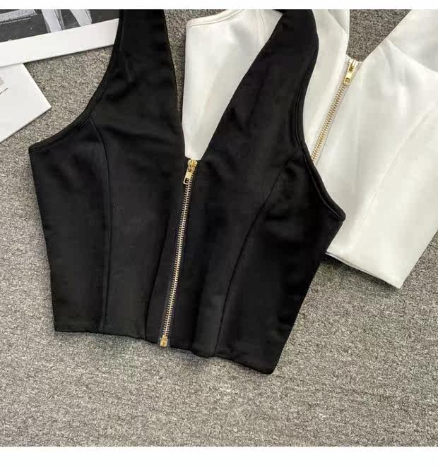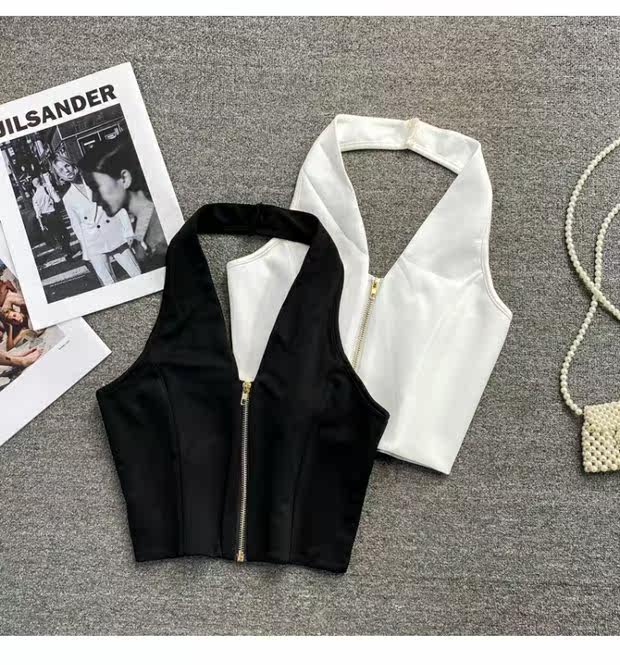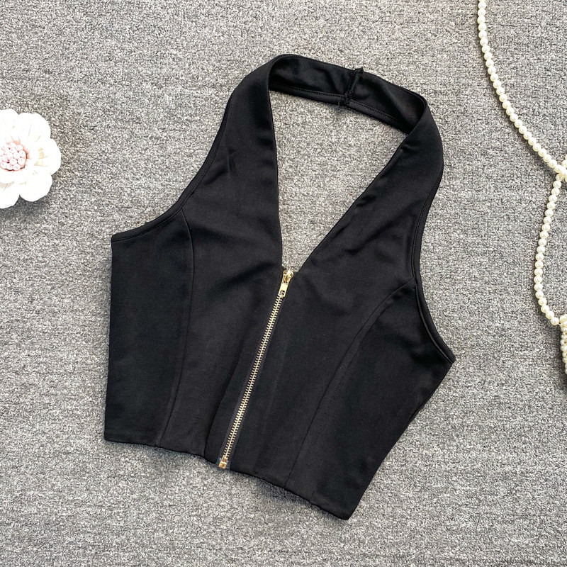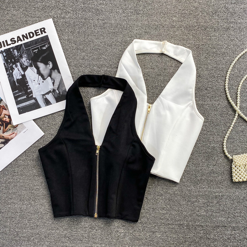 Короткая майка топ с молнией, коллекция 2021, европейский стиль, с открытой спиной