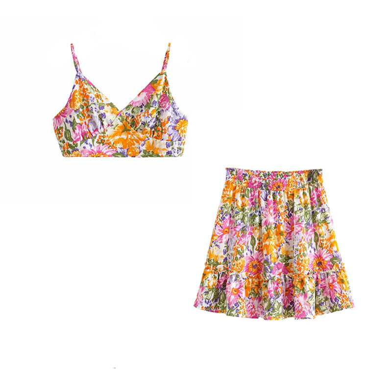 Сексуальный топ с чашечками, майка топ, мини-юбка, комплект, европейский стиль, французский стиль