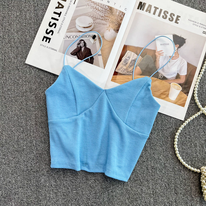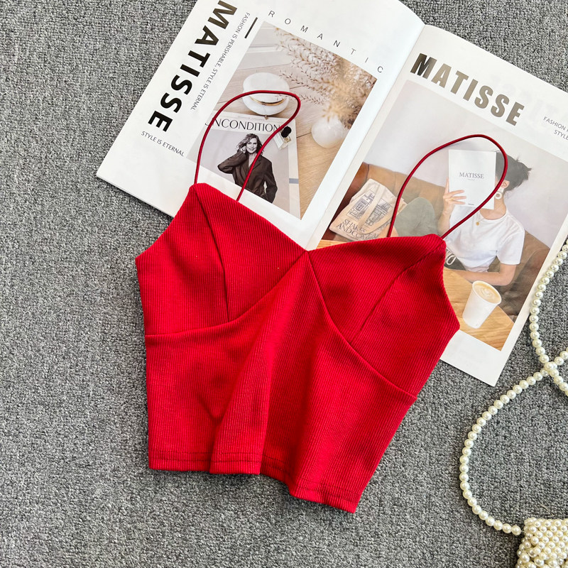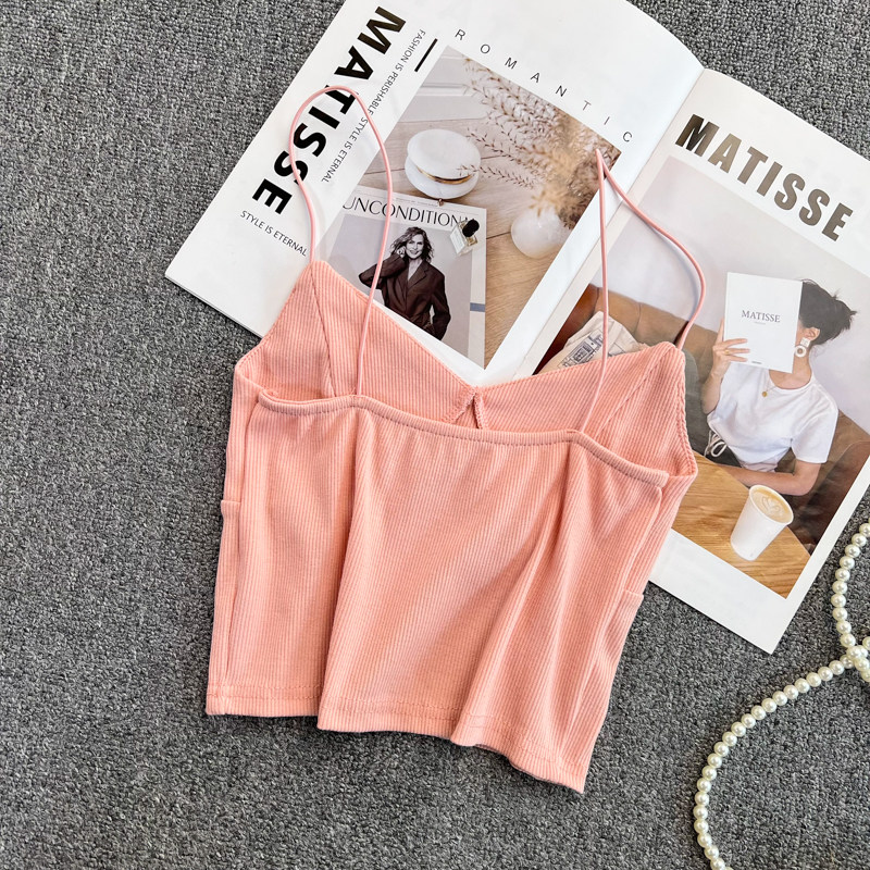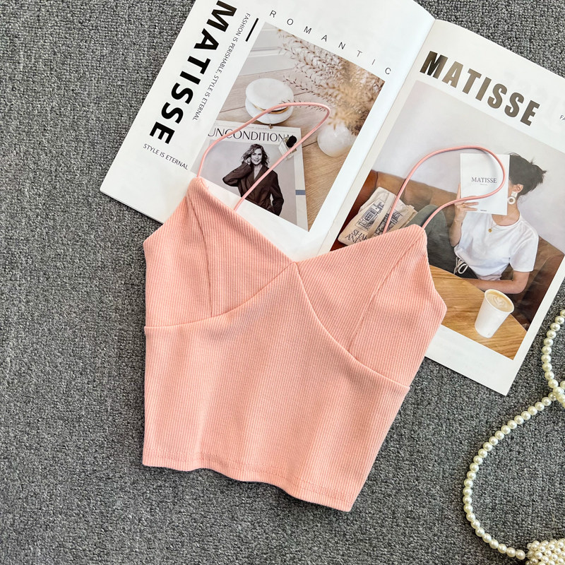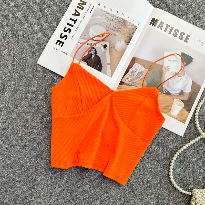 Летний дизайнерский приталенный трикотажный топ с чашечками без рукавов, майка топ, тренд сезона, V-образный вырез, с открытой спиной