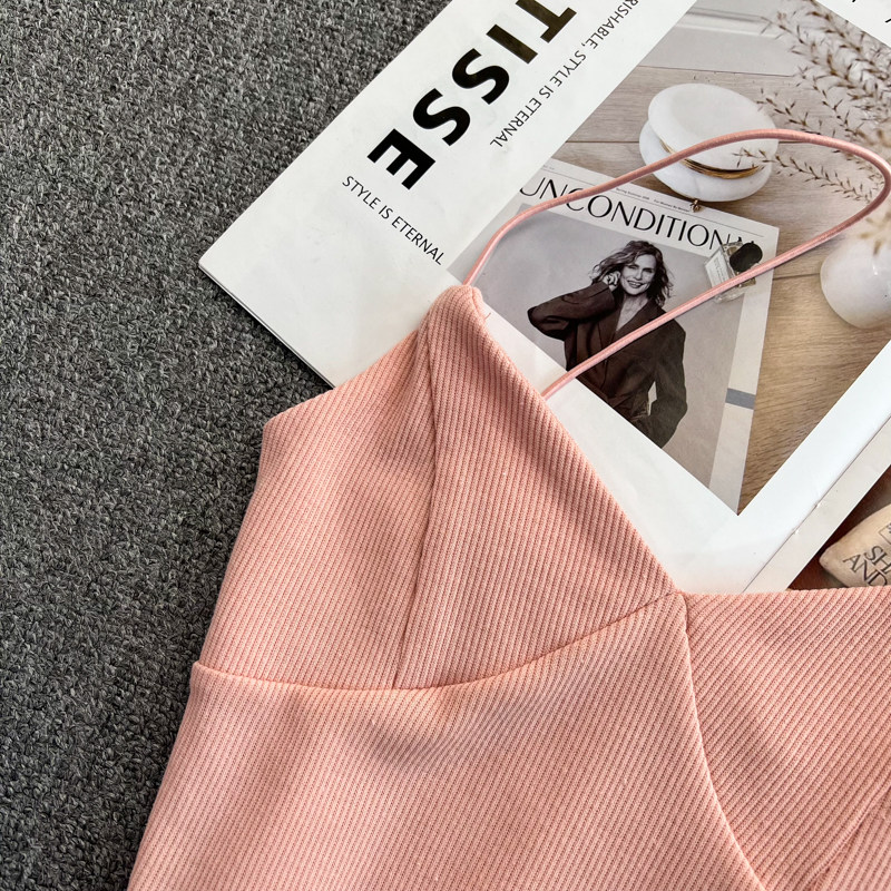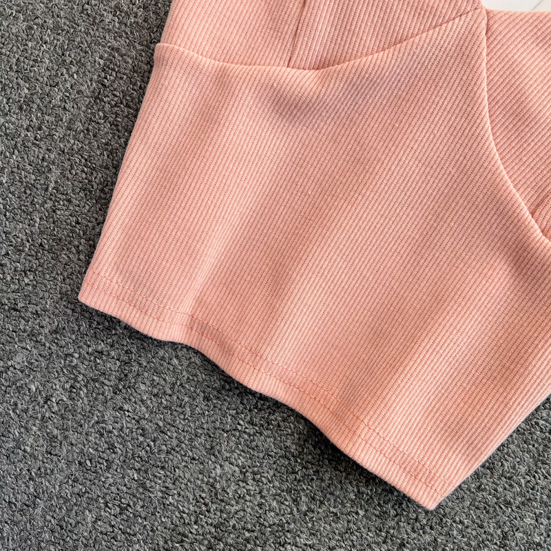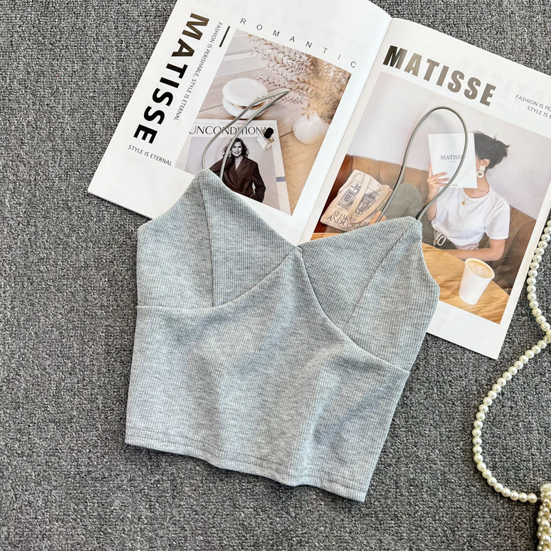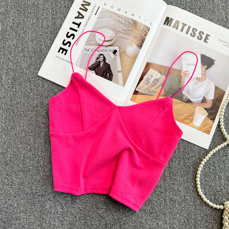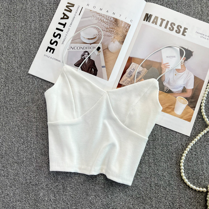 Летний дизайнерский приталенный трикотажный топ с чашечками без рукавов, майка топ, тренд сезона, V-образный вырез, с открытой спиной