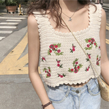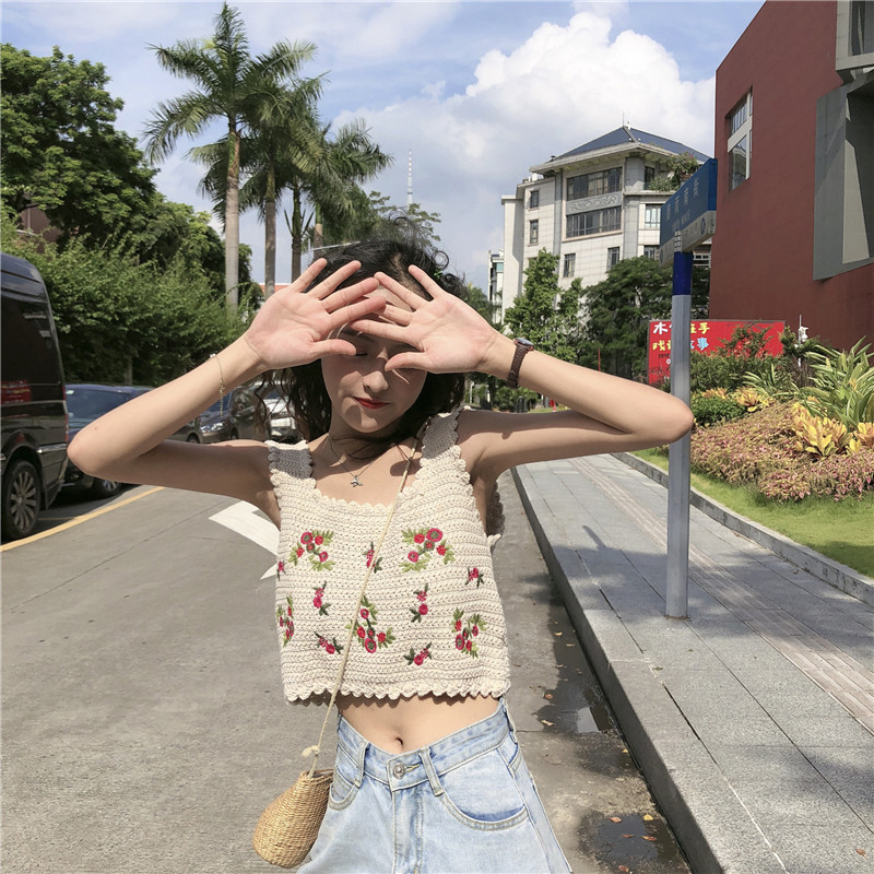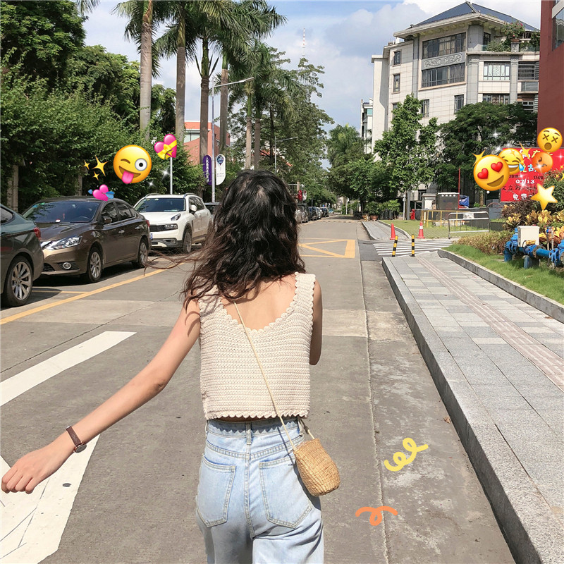 Брендовый дизайнерский ретро короткий трикотажный жилет, летняя майка топ, для маленькой груди, тренд сезона