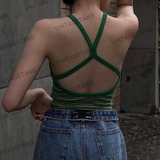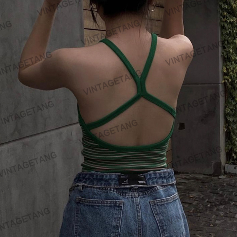 Ретро зеленый короткий топ с чашечками, в американском стиле, с открытой спиной