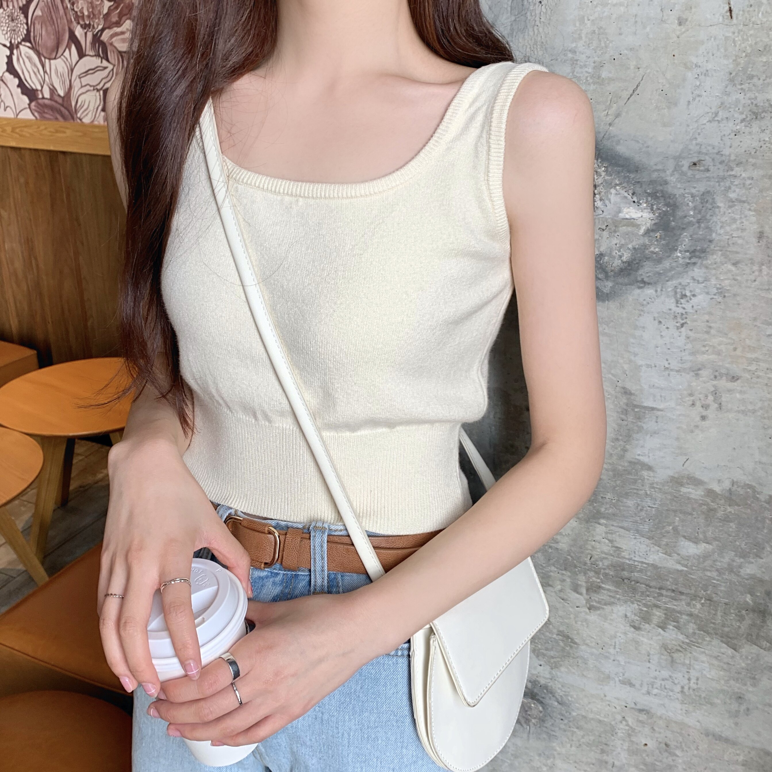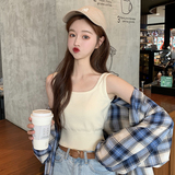 Трикотажная летняя майка, базовый приятный телу дизайнерский бюстгальтер-топ, для маленькой груди, облегающий крой, тренд сезона