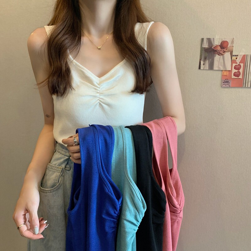 Летняя модная дизайнерская трикотажная майка топ без рукавов, в корейском стиле, V-образный вырез, тренд сезона
