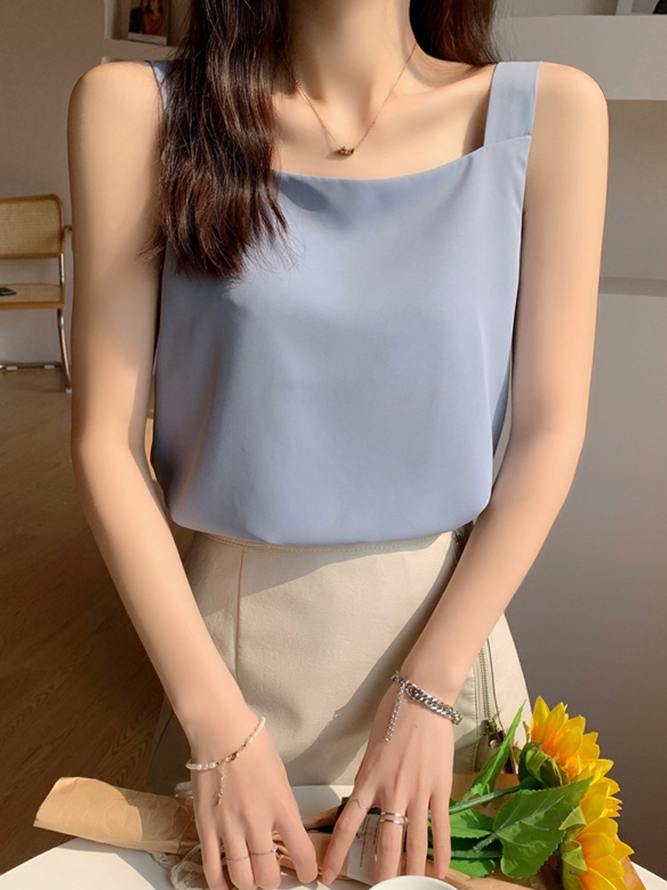 Шелковая дизайнерская майка топ, дизайнерский комплект, шифоновая летняя футболка без рукавов, тренд сезона