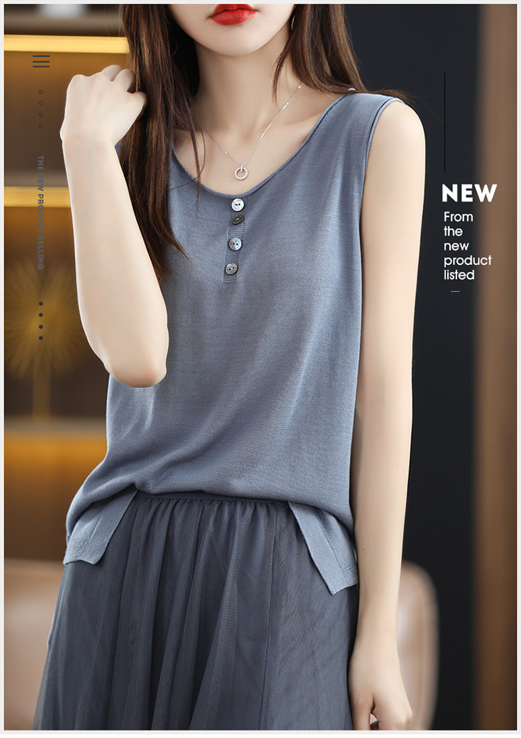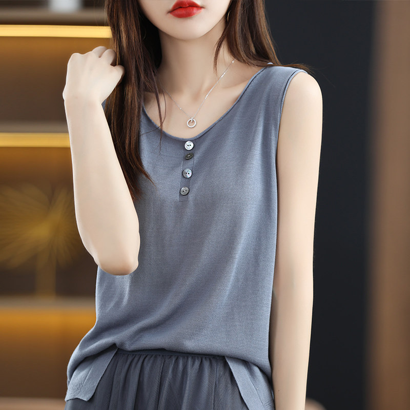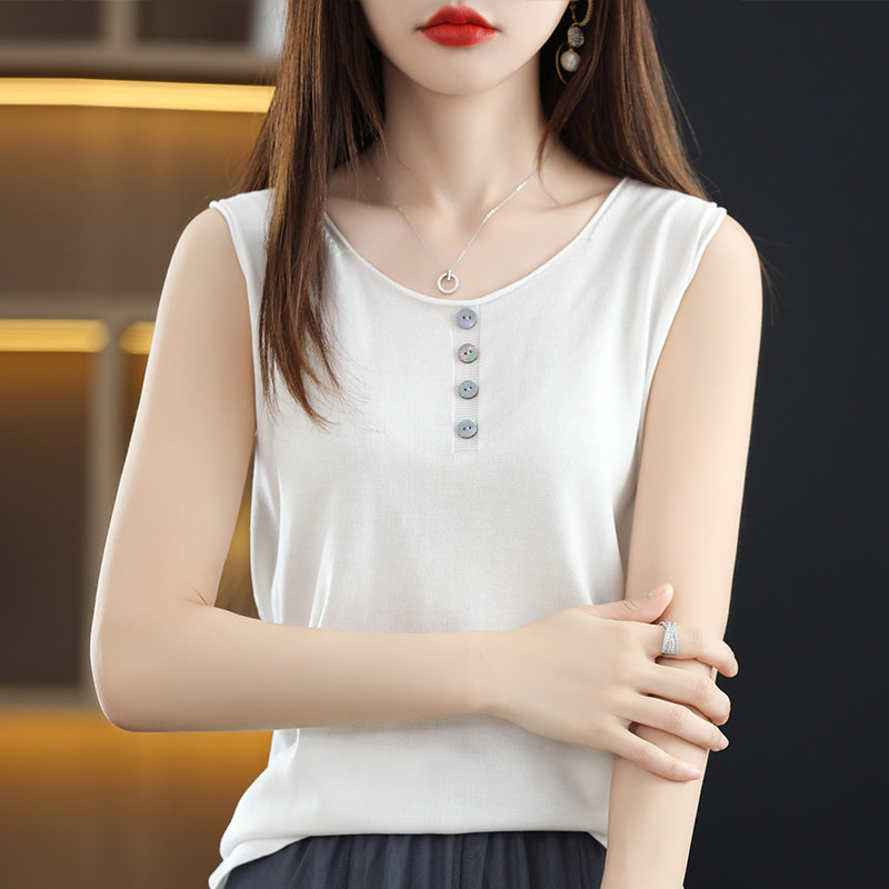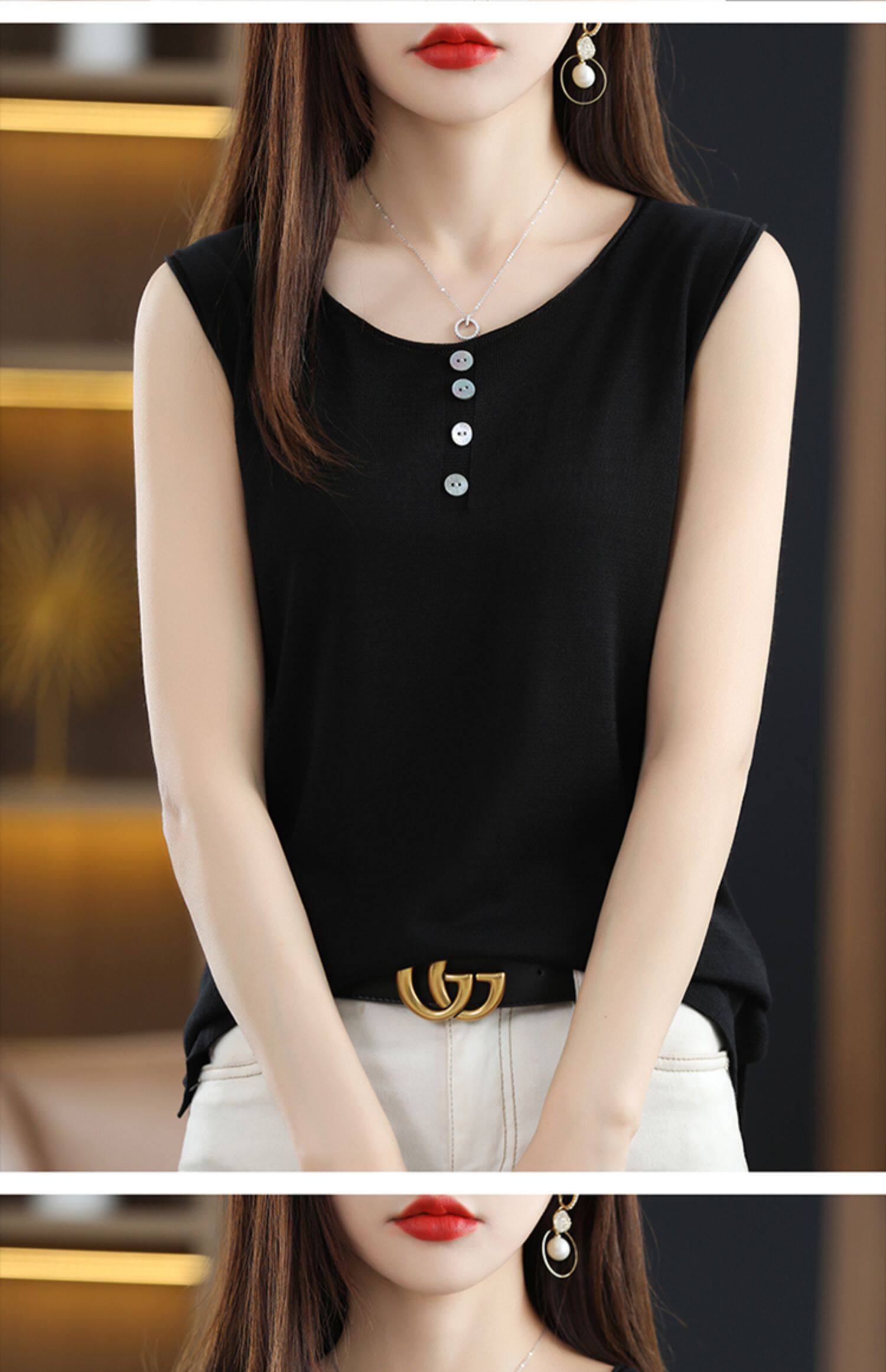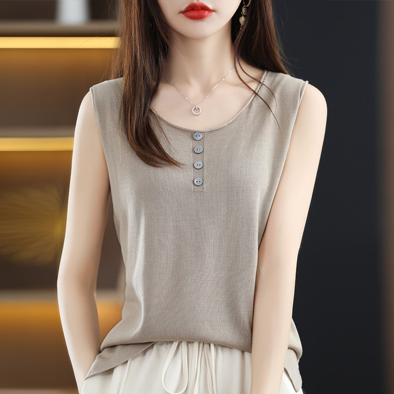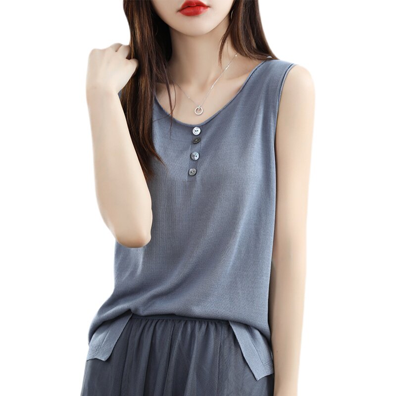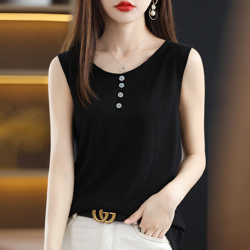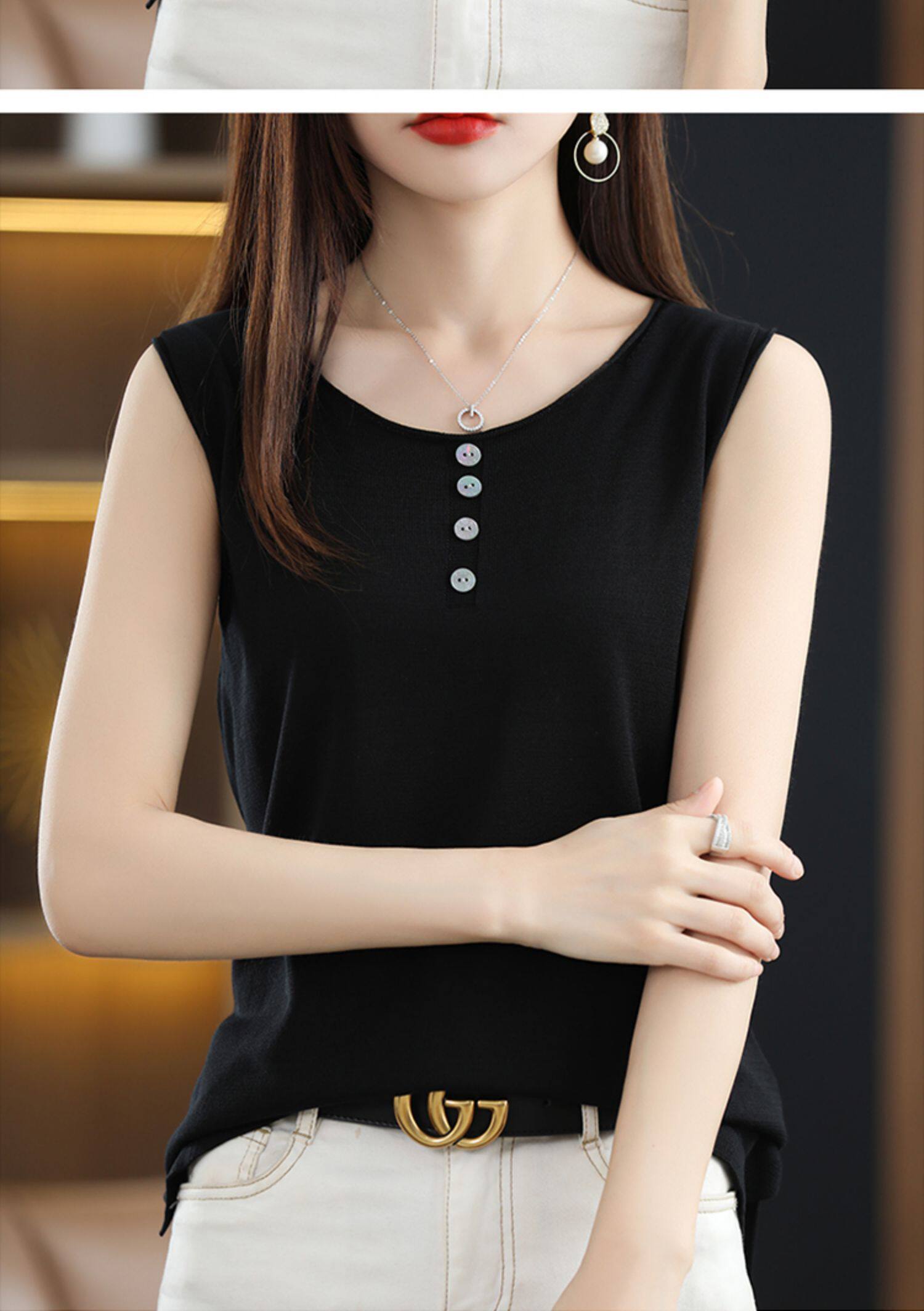 Летняя майка топ, трикотажный костюм с круглым воротником, футболка без рукавов