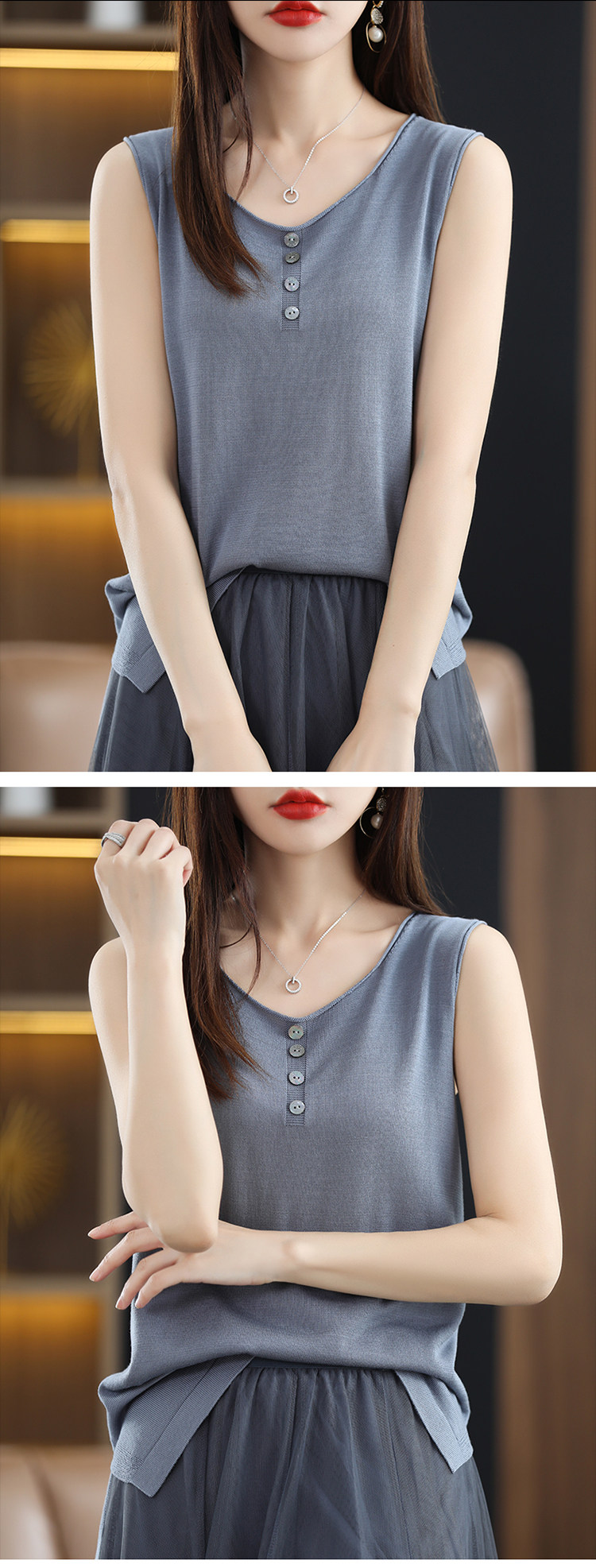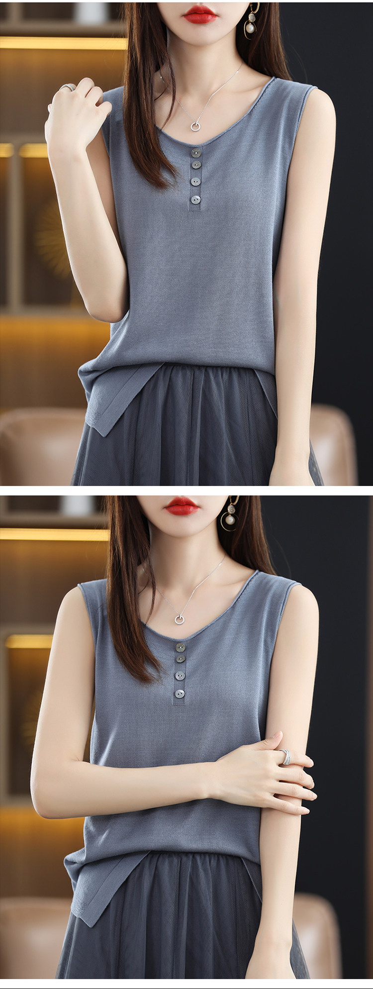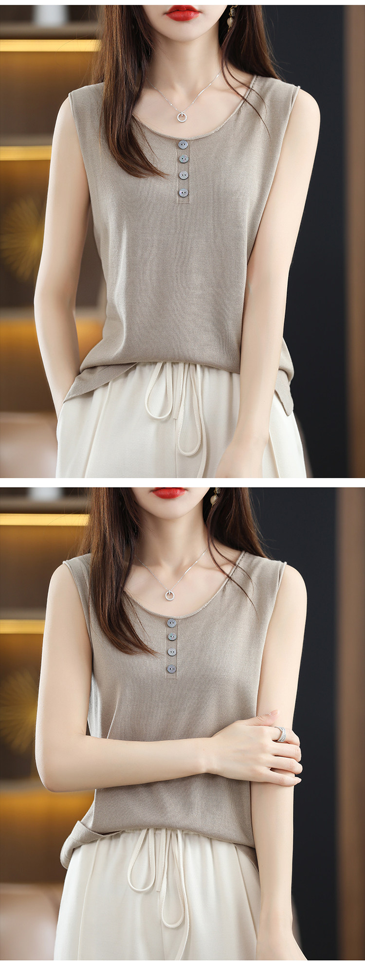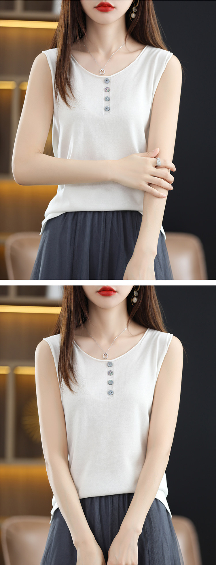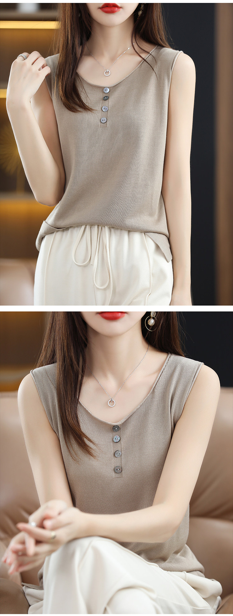 Летняя майка топ, трикотажный костюм с круглым воротником, футболка без рукавов