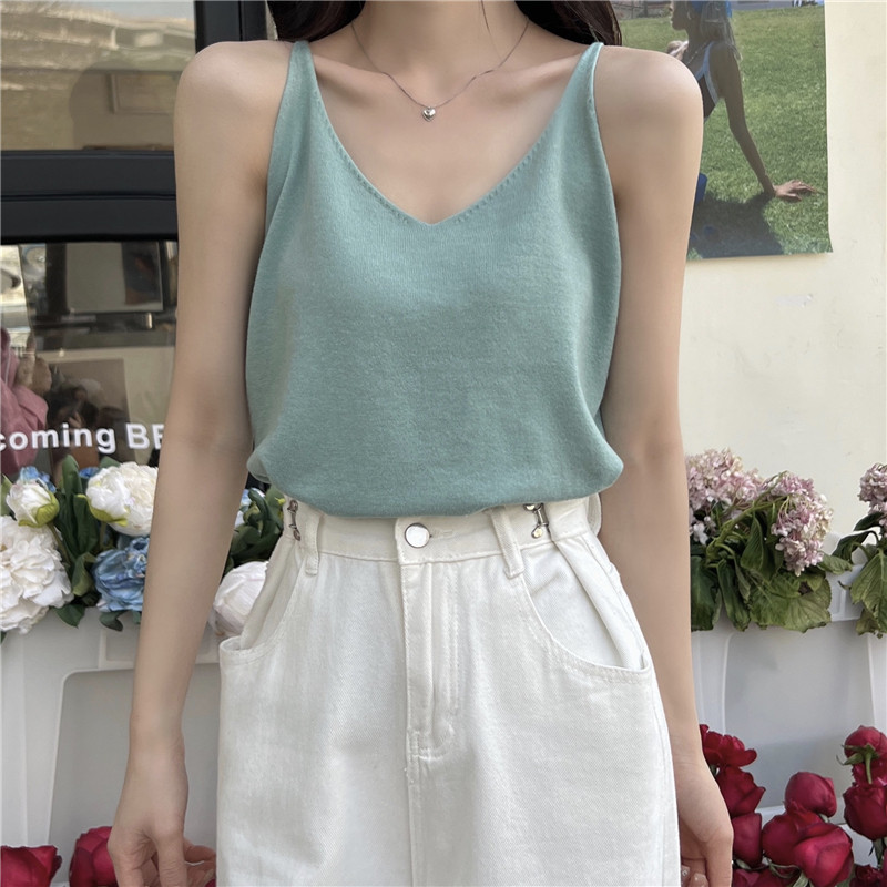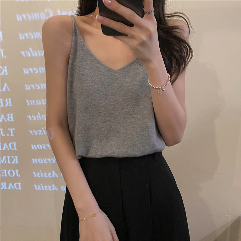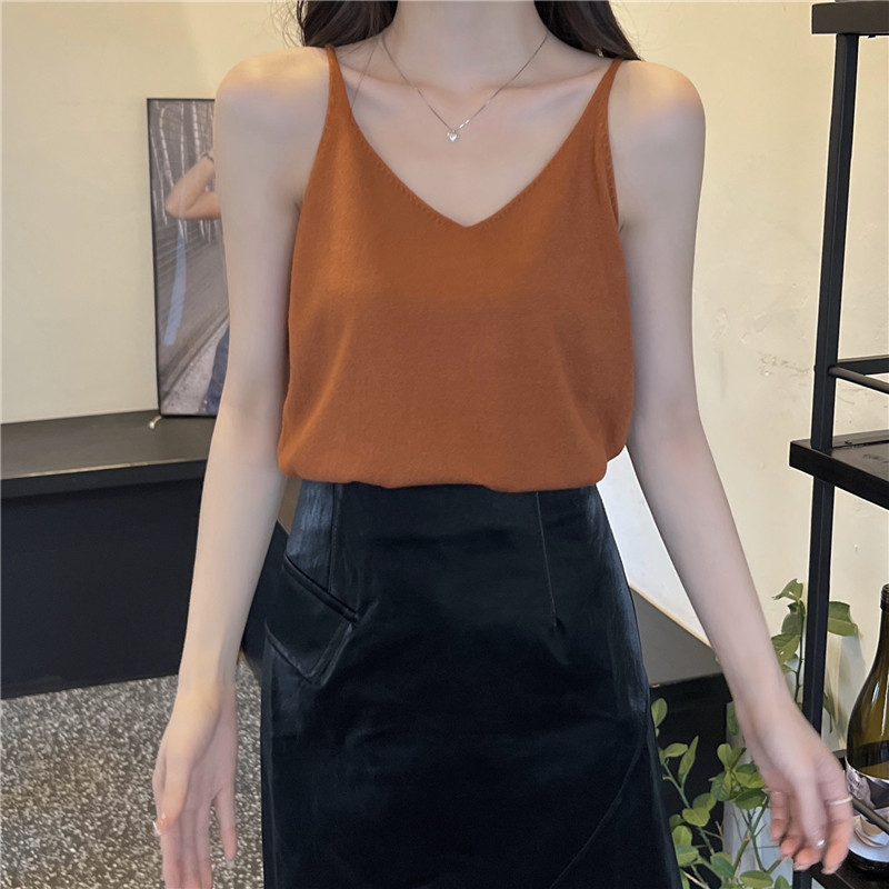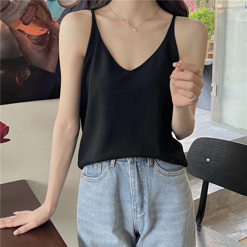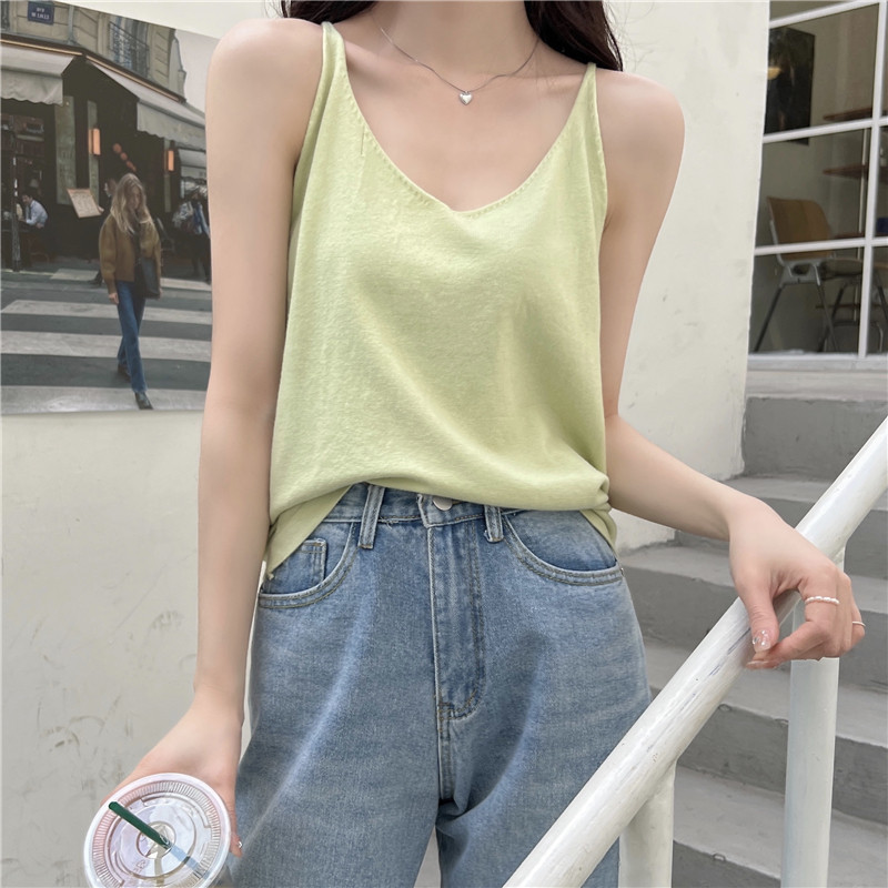 Трикотажная базовая короткая майка топ без рукавов, осенняя, красивая спина