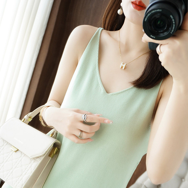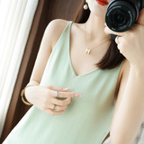 Шелковая трикотажная майка топ без рукавов, платье без рукавов, эффект подтяжки, коллекция 2022, V-образный вырез, длина миди