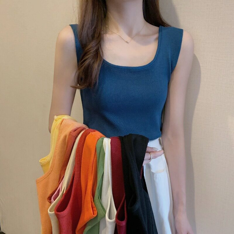 Трикотажная майка, весенний брендовый топ с чашечками, сексуальный костюм, футболка без рукавов