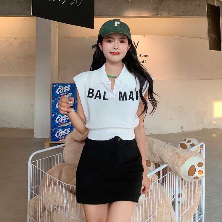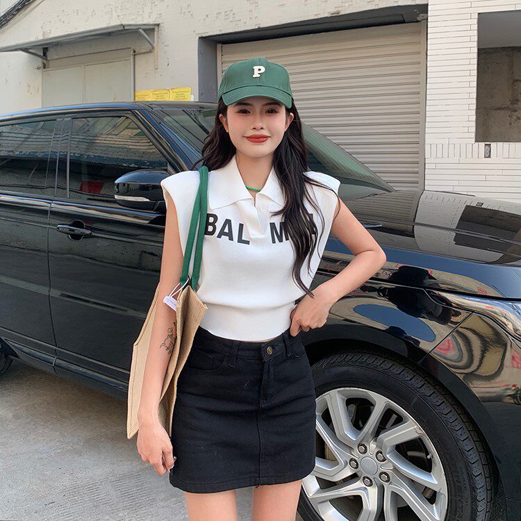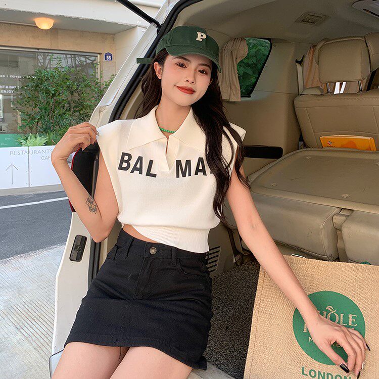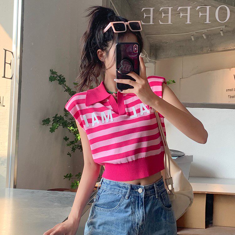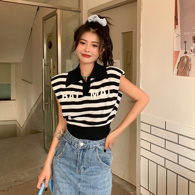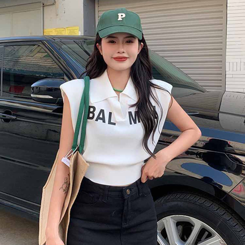 Жилет без рукавов, зимняя трикотажная футболка, воротник поло, в корейском стиле
