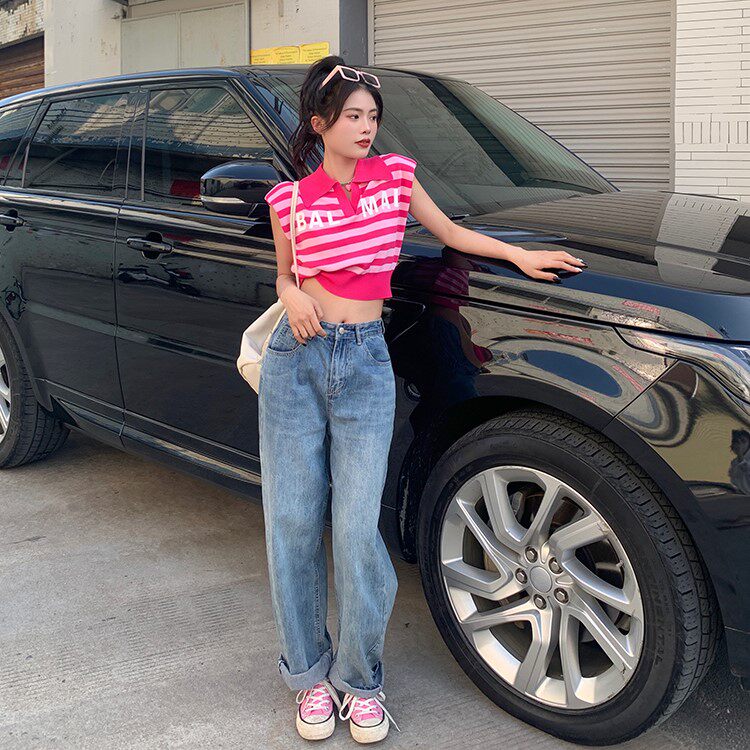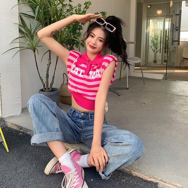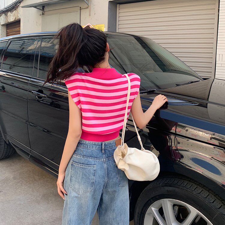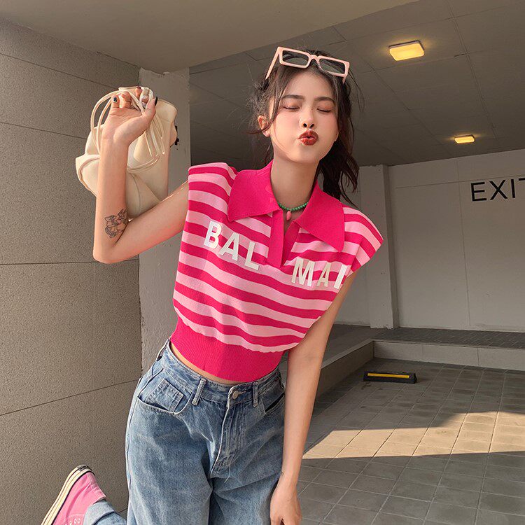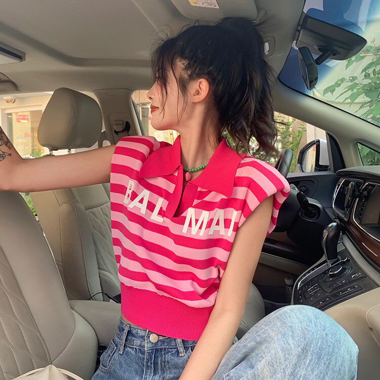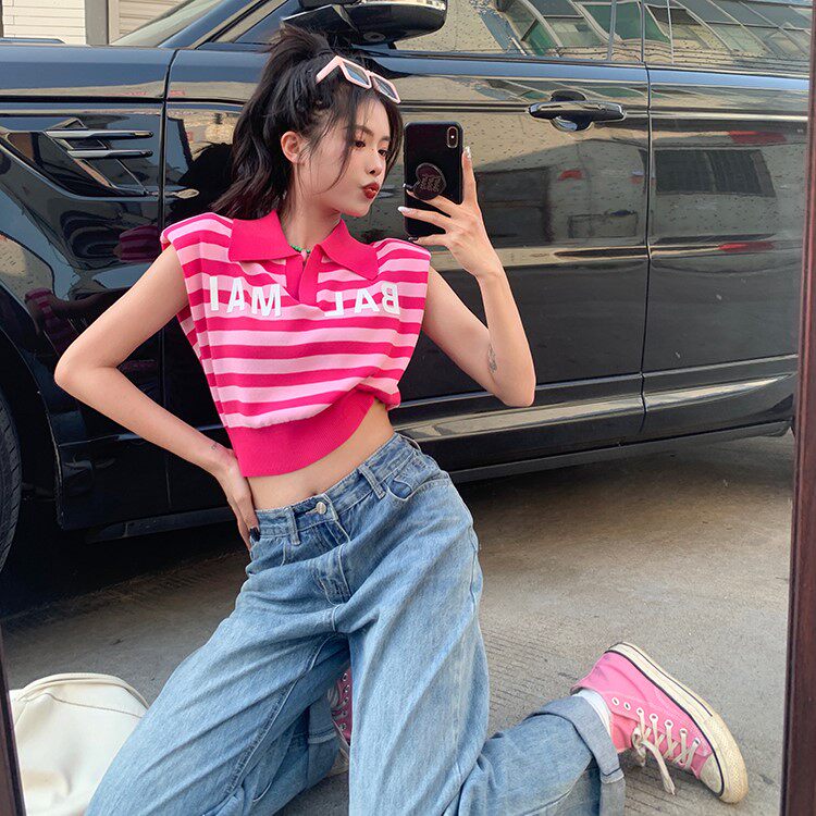 Жилет без рукавов, зимняя трикотажная футболка, воротник поло, в корейском стиле