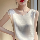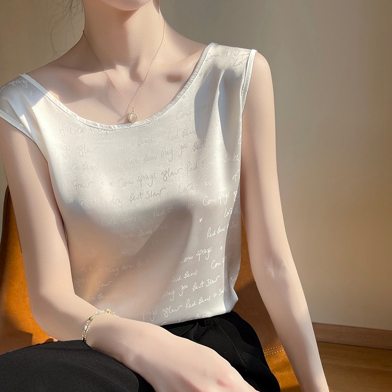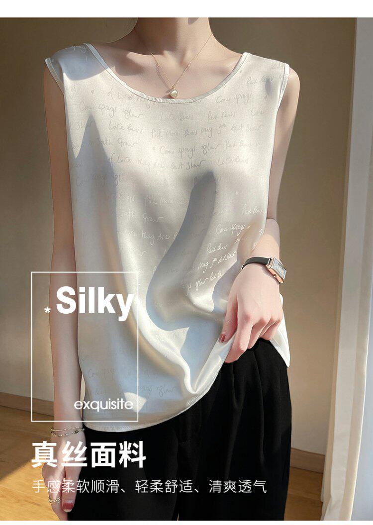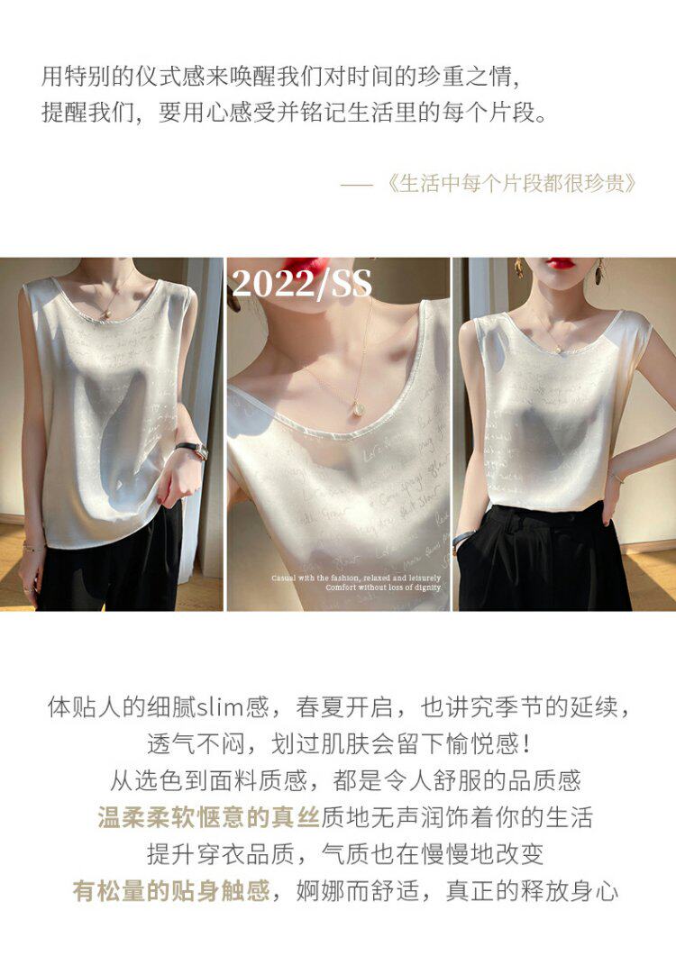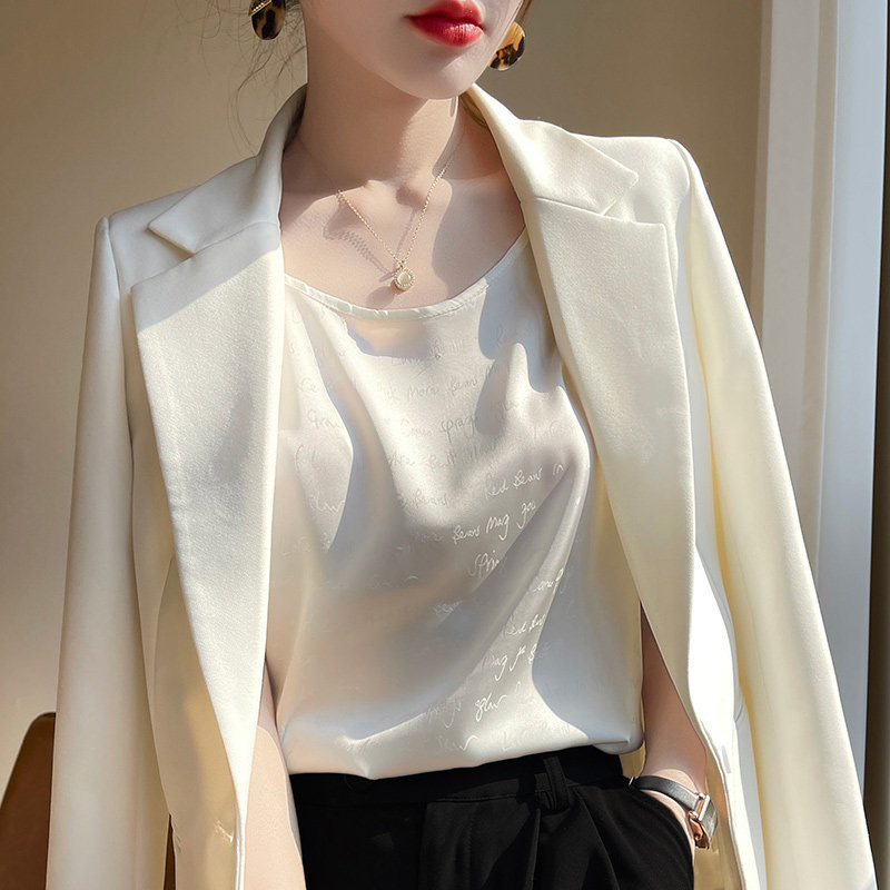 Шелковая майка топ, шелковый пиджак классического кроя с круглым воротником, 2022, эффект подтяжки