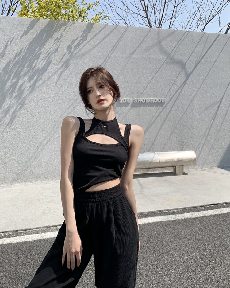 Дизайнерская базовая черная сексуальная осенняя майка, тренд сезона, эффект подтяжки