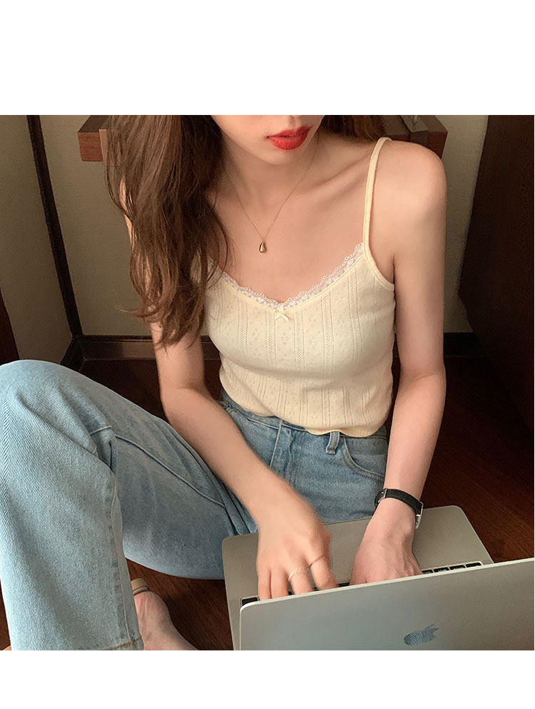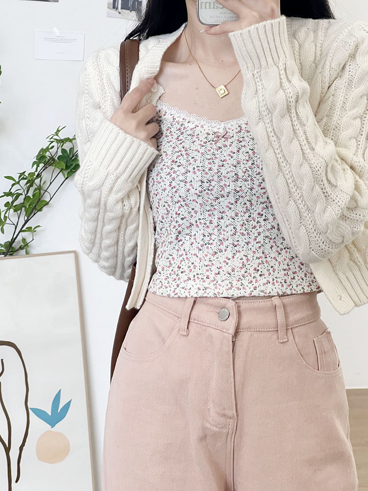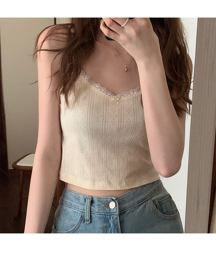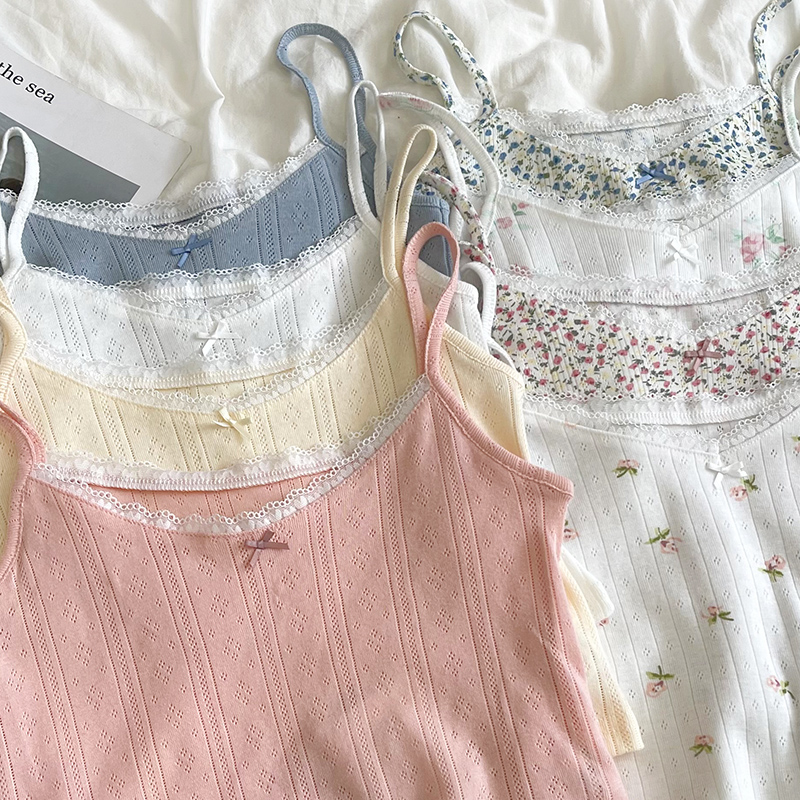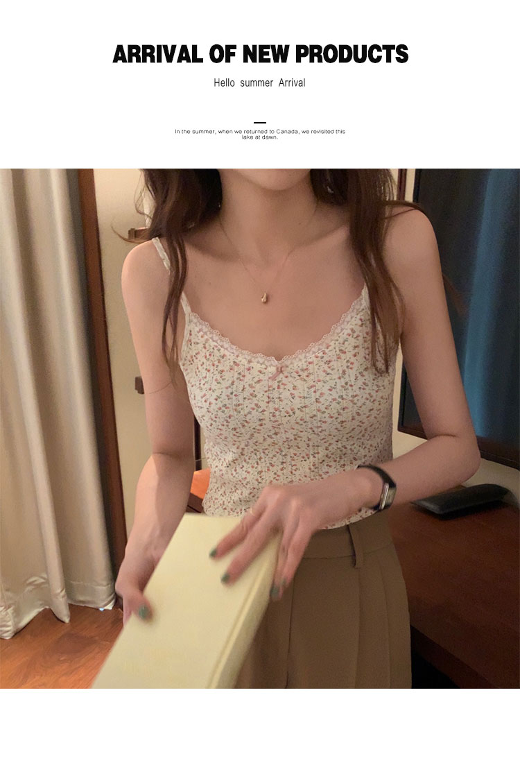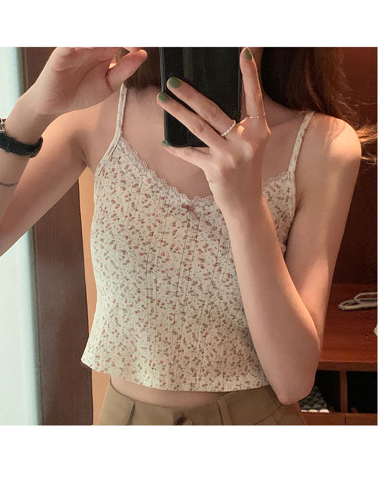 Милая кружевная летняя комфортная майка, топ с чашечками, кружевное платье, V-образный вырез, цветочный принт