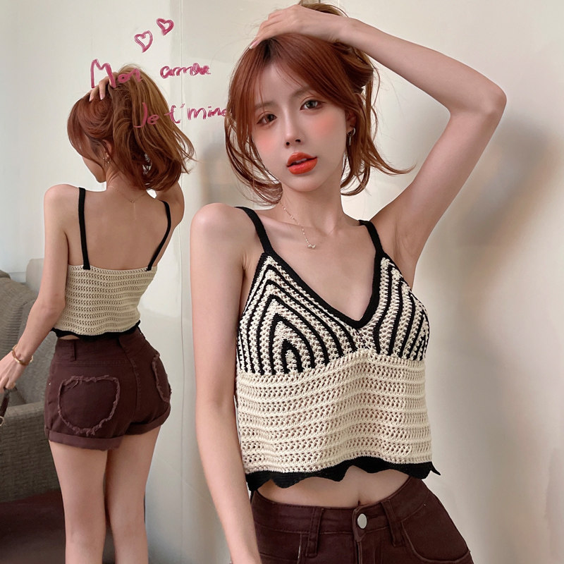 Трикотажная майка, летний короткий топ с чашечками без рукавов, популярно в интернете, с открытой спиной