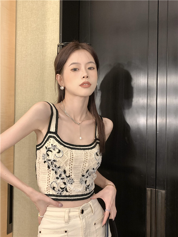 Tide, летний свежий дизайнерский сексуальный трикотажный бюстгальтер-топ, майка топ, в корейском стиле, с вышивкой, тренд сезона