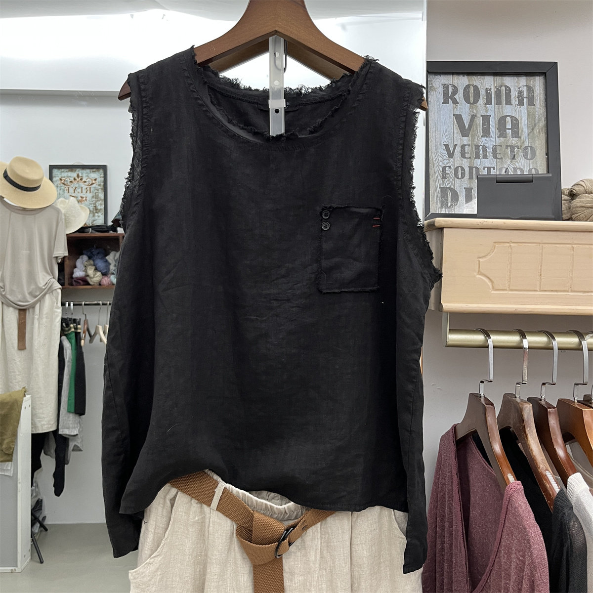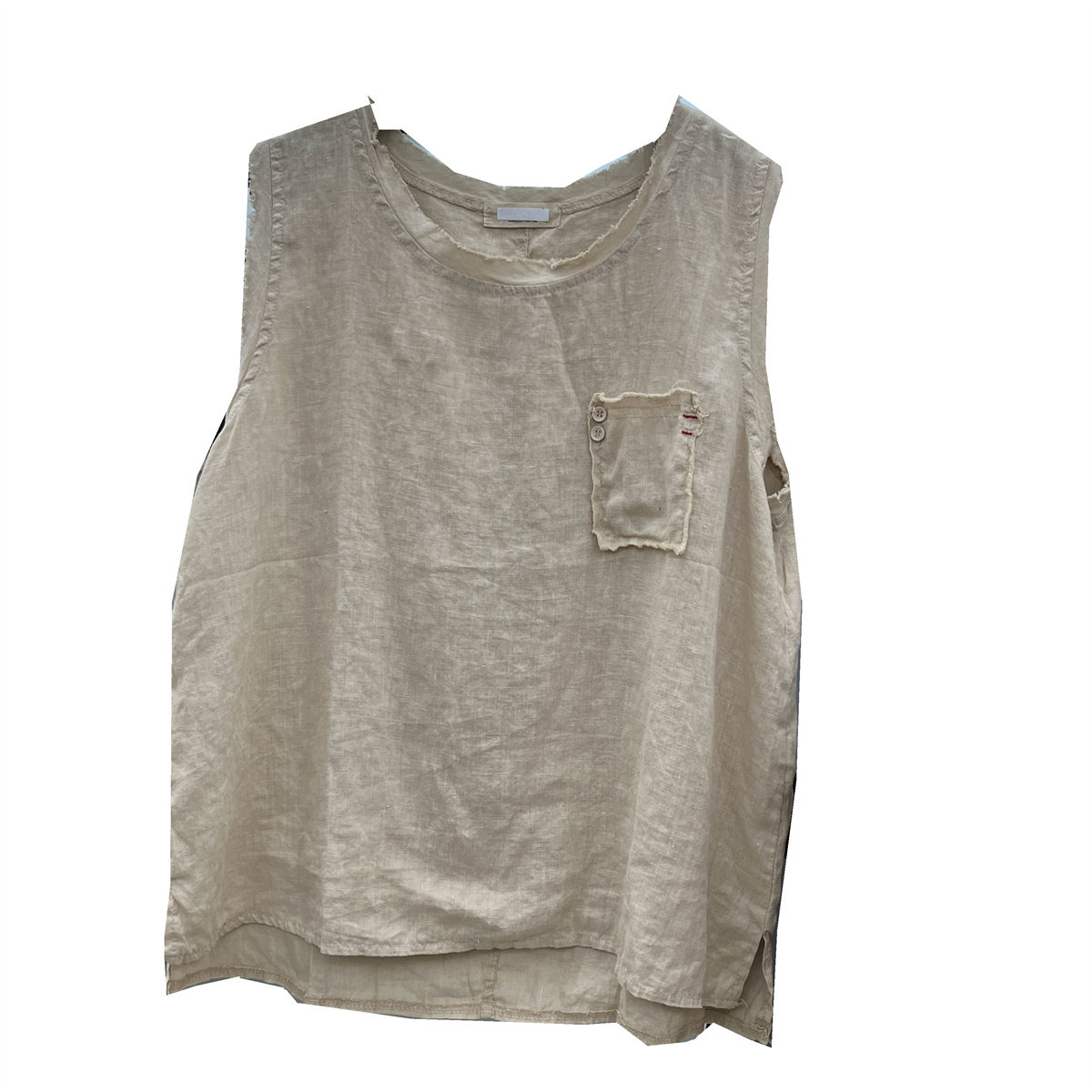 Летняя однотонная майка топ с круглым воротником, модная тонкая футболка без рукавов, из хлопка и льна, свободный крой