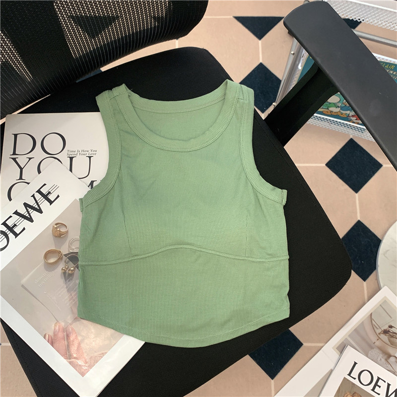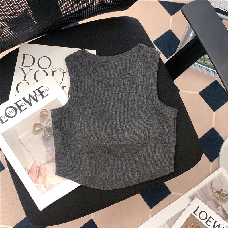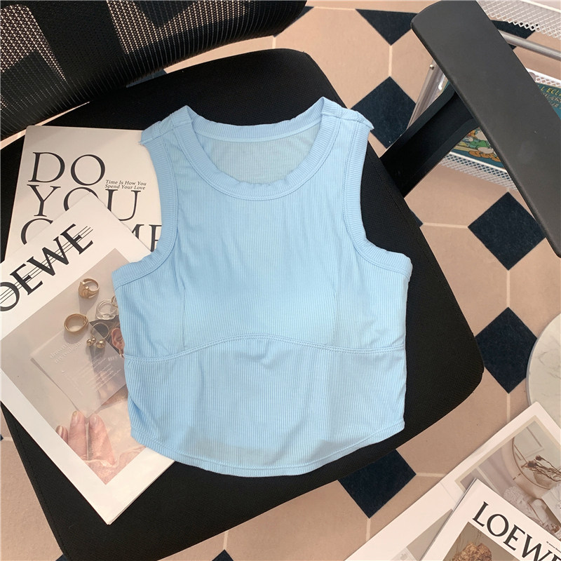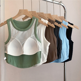 Короткий топ с чашечками, майка топ, спортивный базовый приятный телу бюстгалтер без рукавов, эффект подтяжки