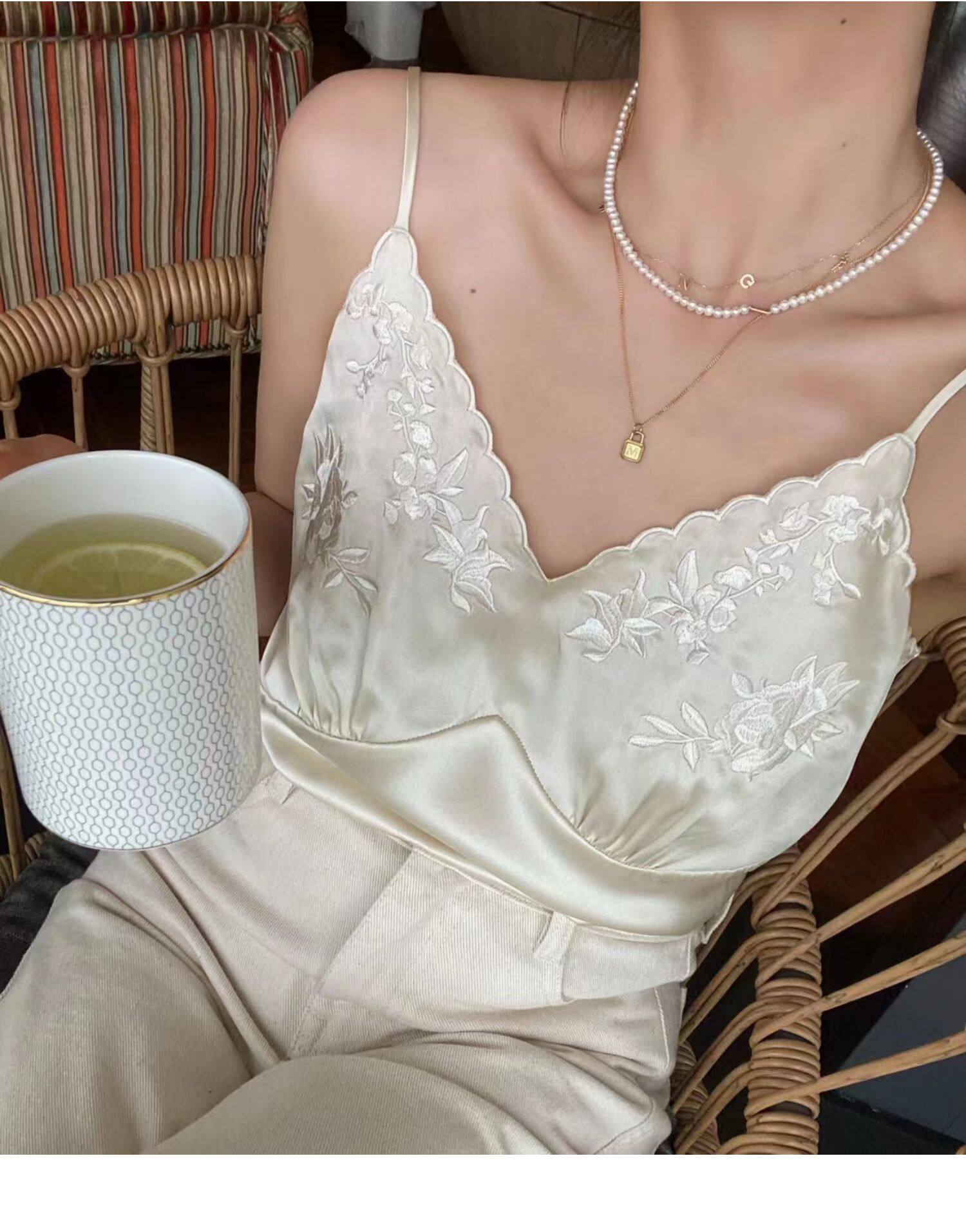Летний черный жилет, шелковые бретели, эффект подтяжки, свободный крой, V-образный вырез