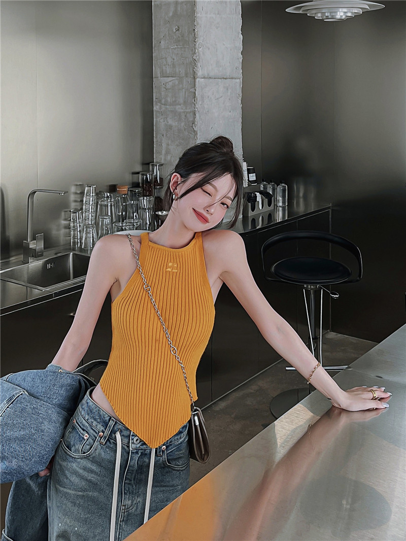 Базовая приятная телу сексуальная желтая майка топ, в обтяжку