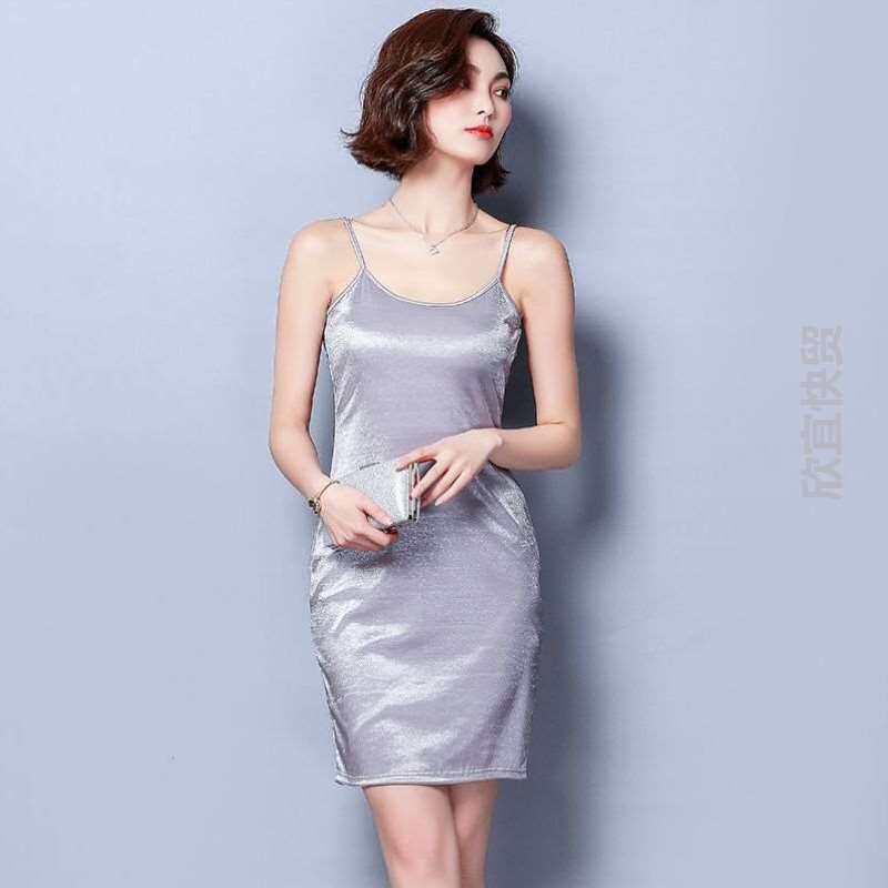 Длинный топ с чашечками, мигающее платье без рукавов, приятная телу шелковистая юбка, пижама, средней длины