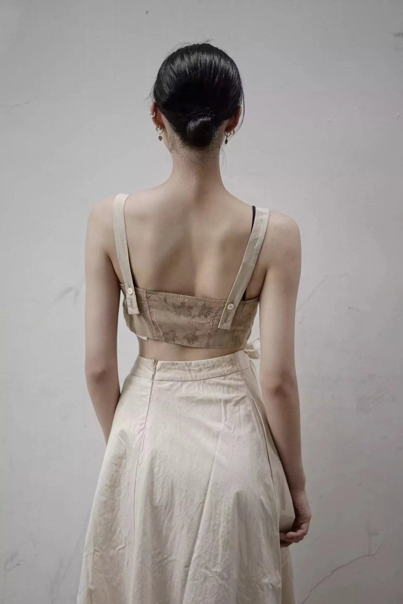 [Скидка] Предварительный ателье с лентой на шее, топ с половиной рукава, готовый товар для дома