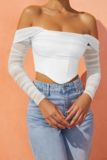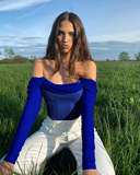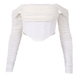 Лонгслив, брендовый корсет, открытые плечи, коллекция 2022, европейский стиль, с открытой спиной