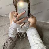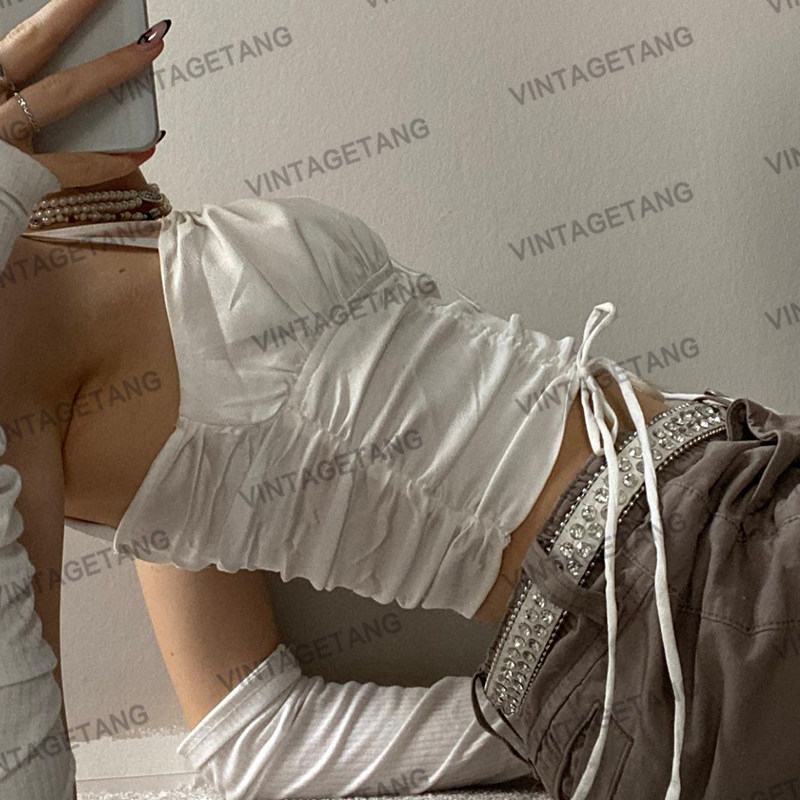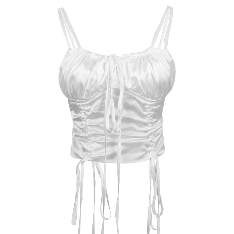 Белый сексуальный топ с чашечками, майка топ, европейский стиль, на шнурках, облегающий крой