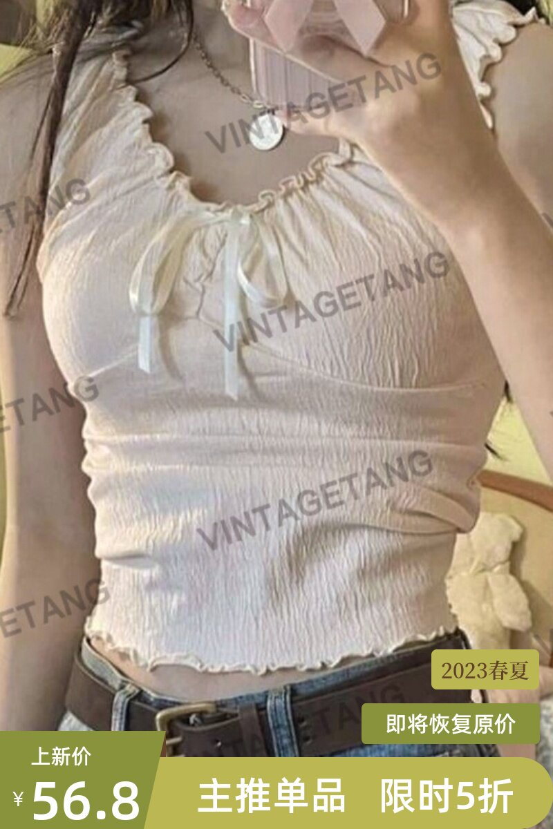 Vintagetang American Sweetheart retro v -neck husk Girl Sline Solites абрикосовые чистое желание Bm 婋 婋 婋 婋