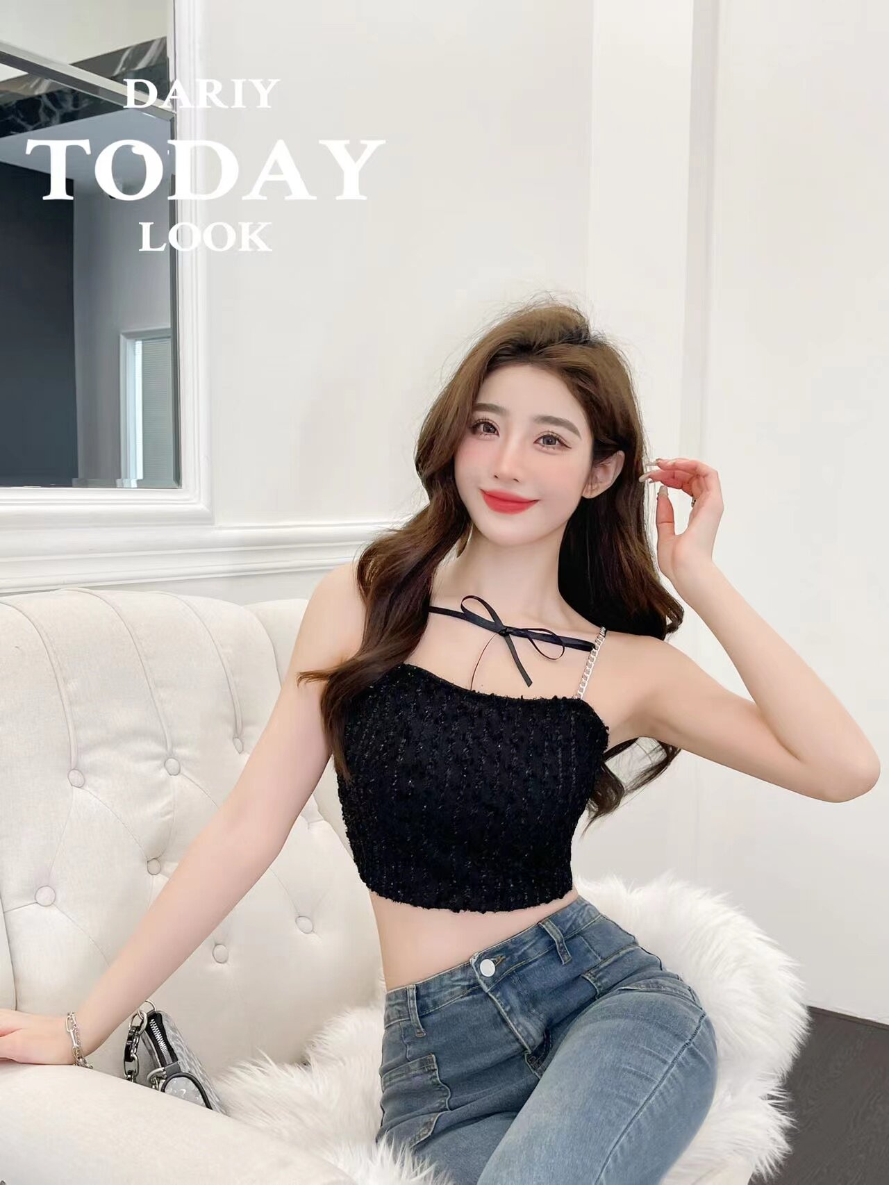 Цепь с бантиком, бретели, сексуальный базовый короткий топ с чашечками, красивая спина