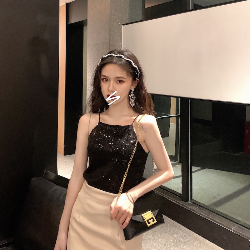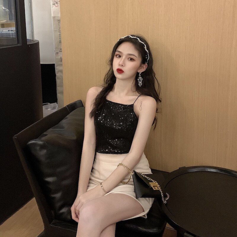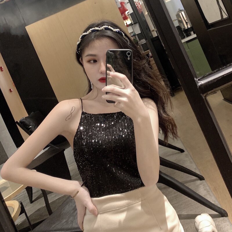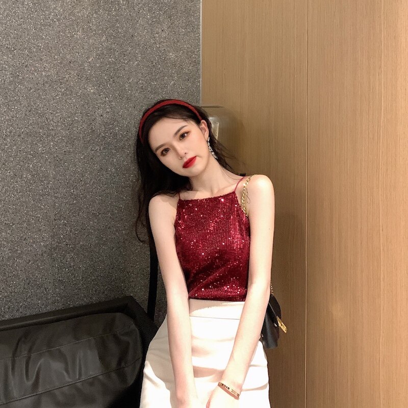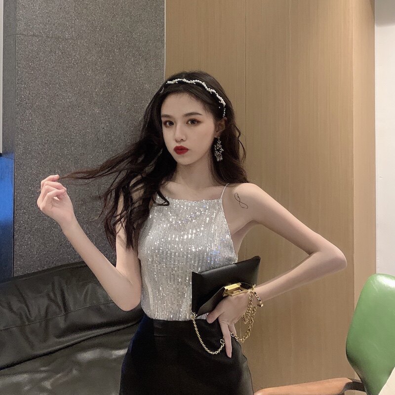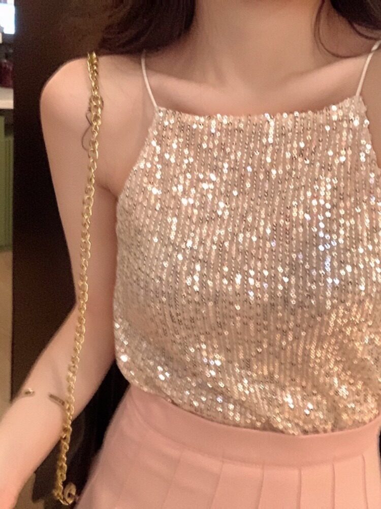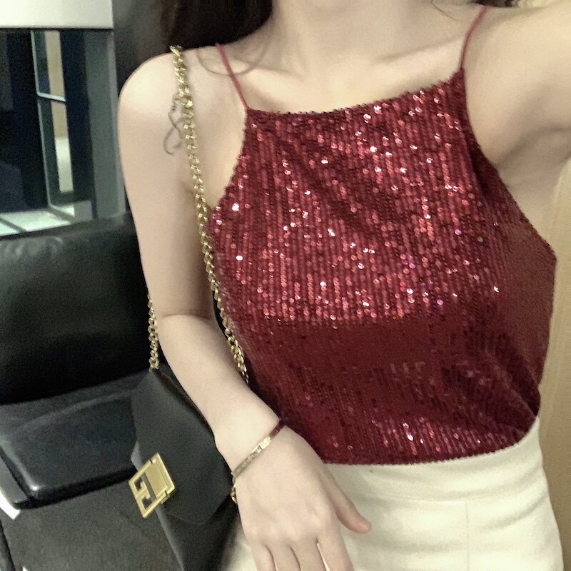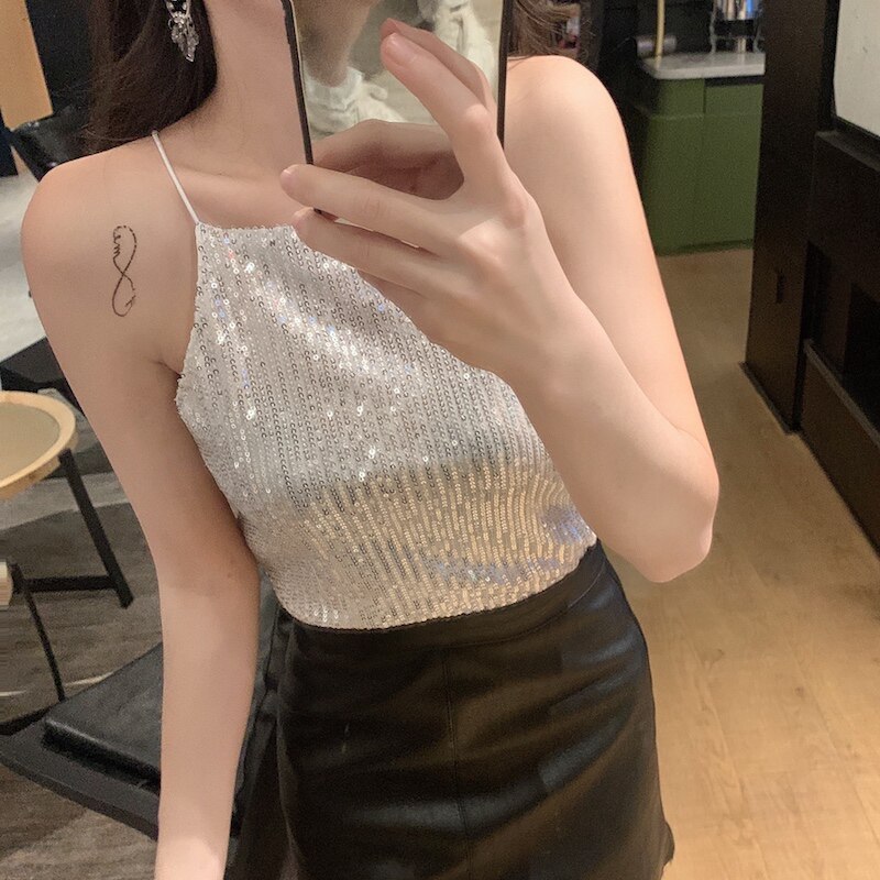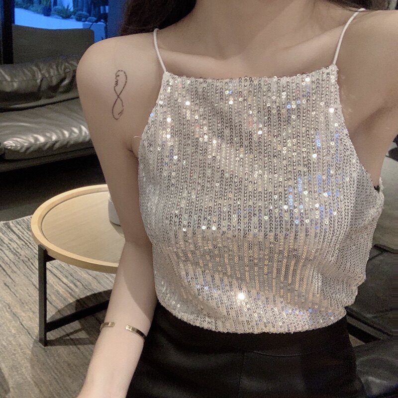 Сексуальные блестки для ногтей, топ с чашечками, майка топ, короткая базовая летняя одежда