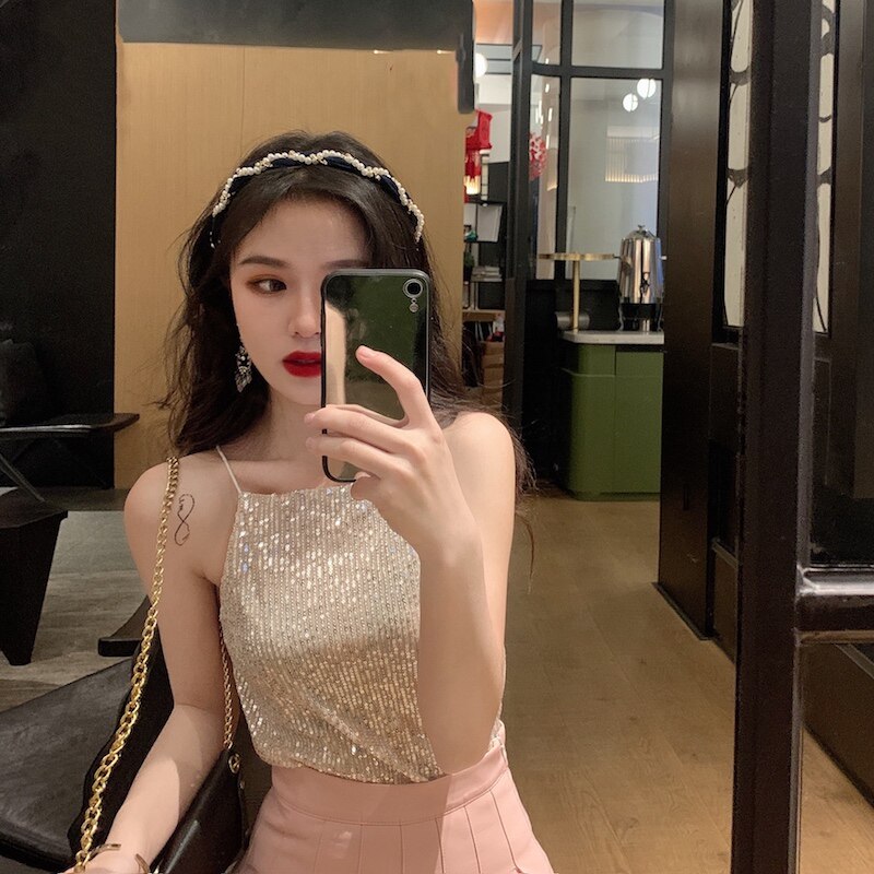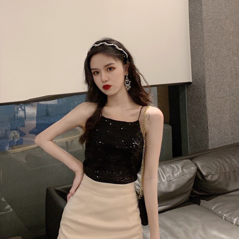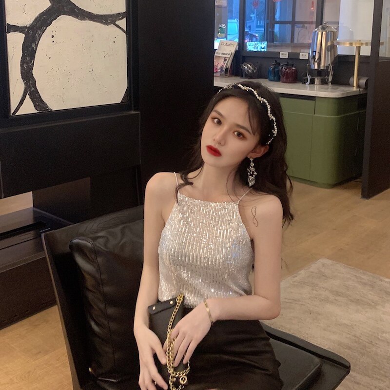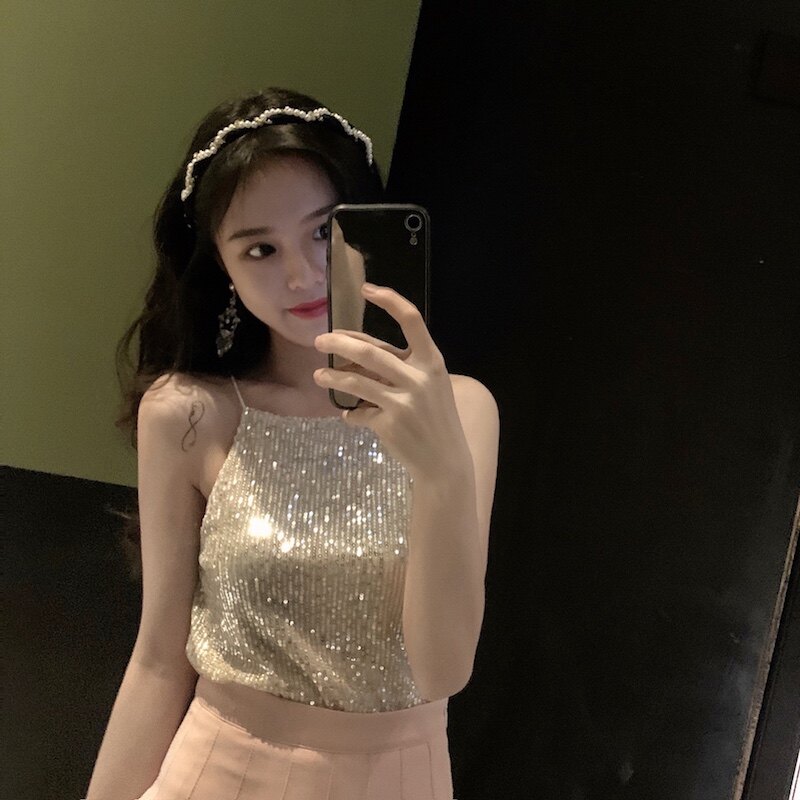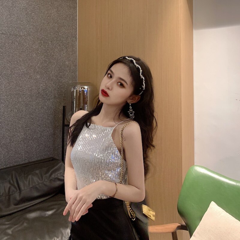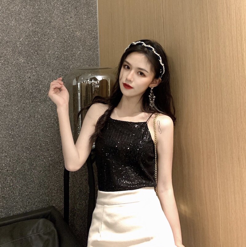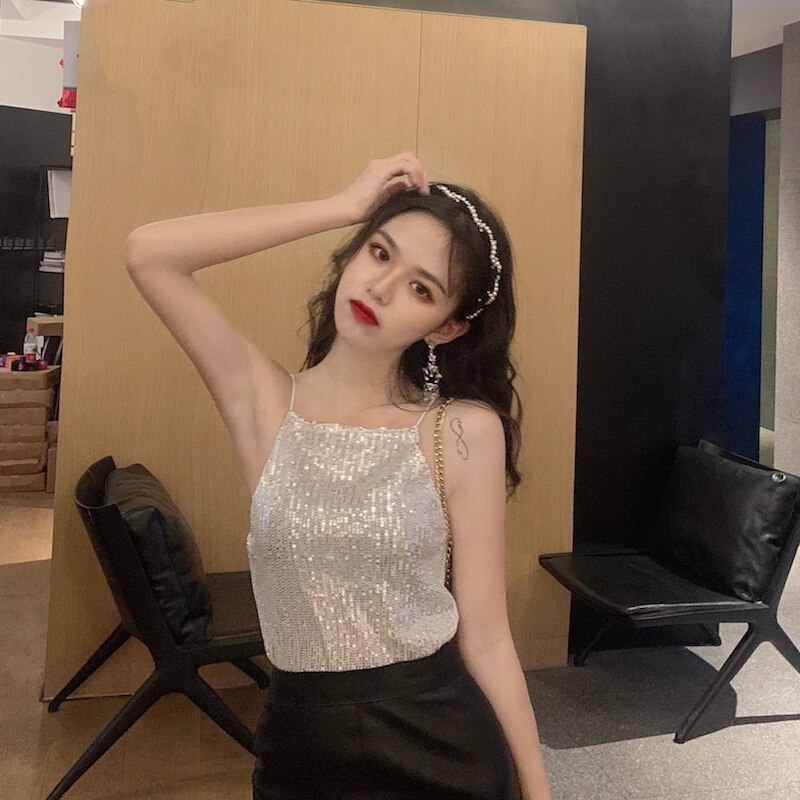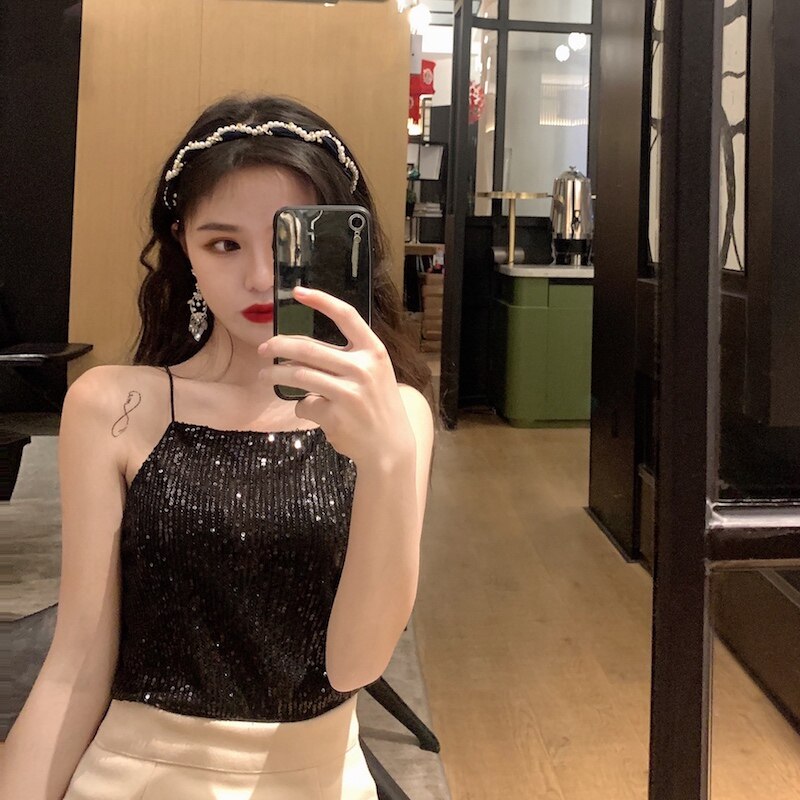 Сексуальные блестки для ногтей, топ с чашечками, майка топ, короткая базовая летняя одежда
