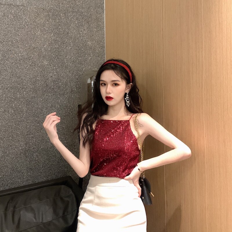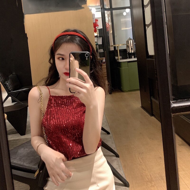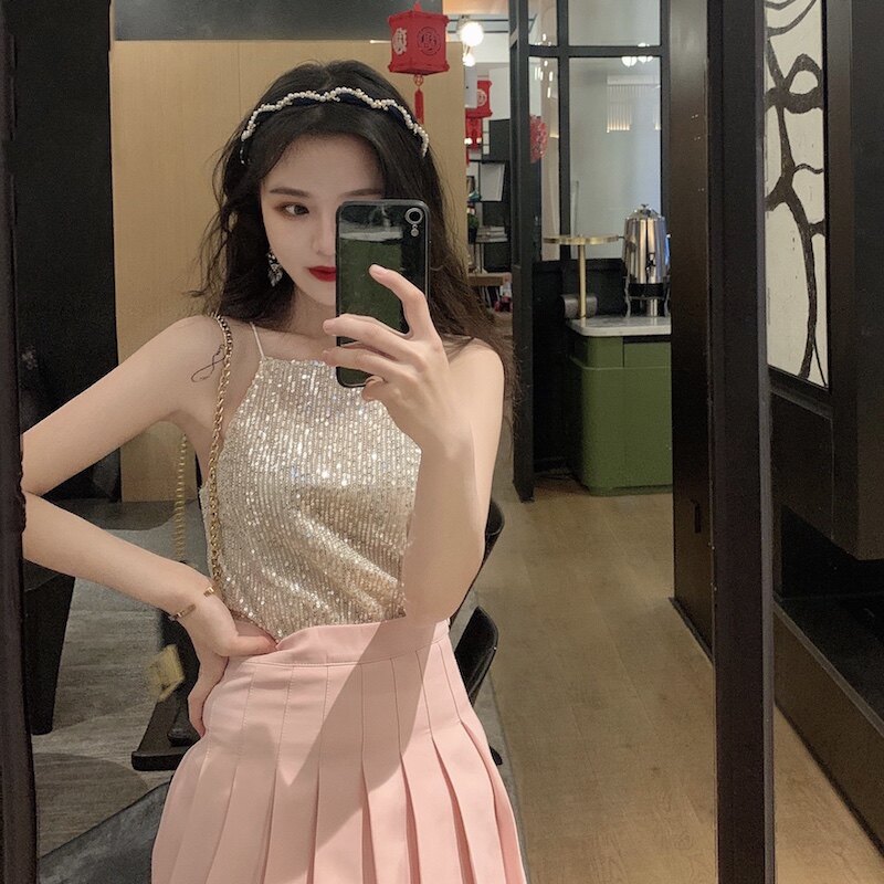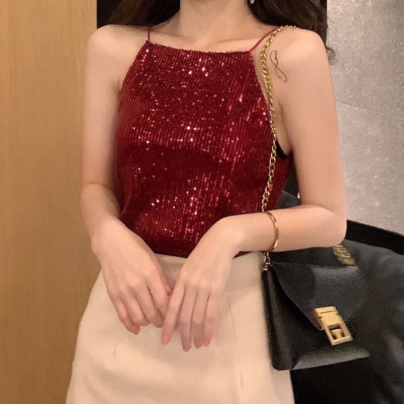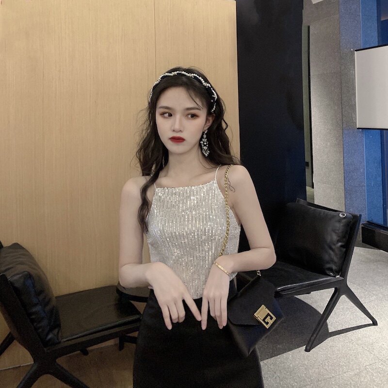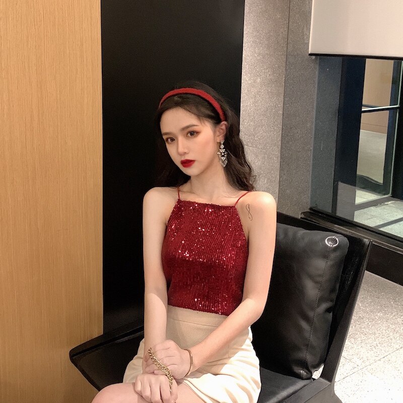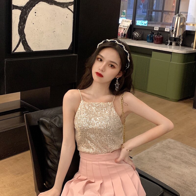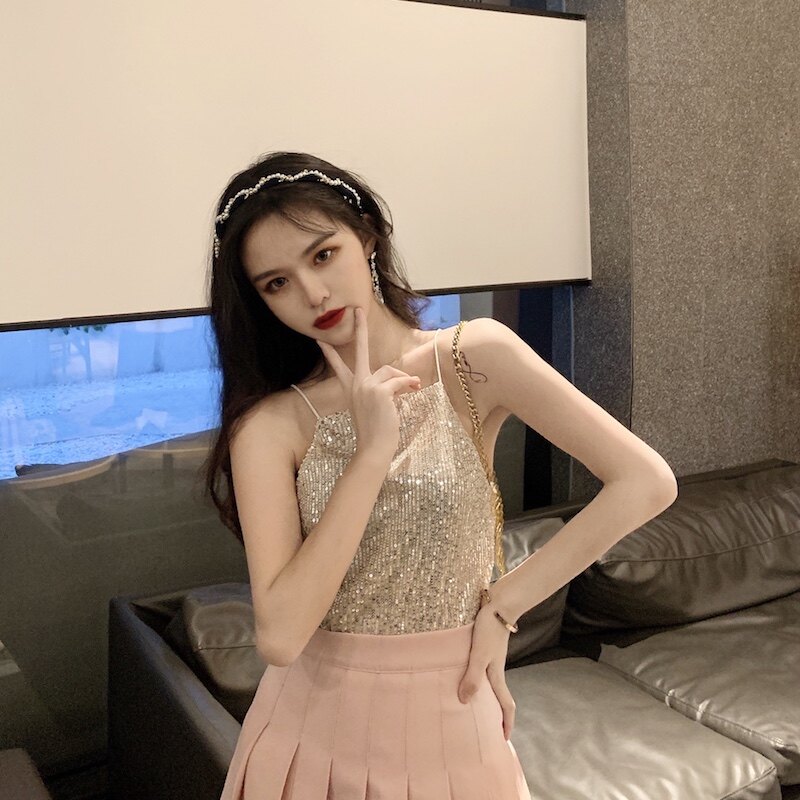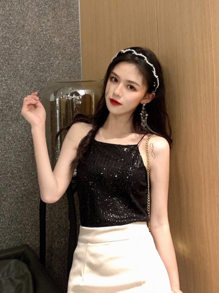 Сексуальные блестки для ногтей, топ с чашечками, майка топ, короткая базовая летняя одежда