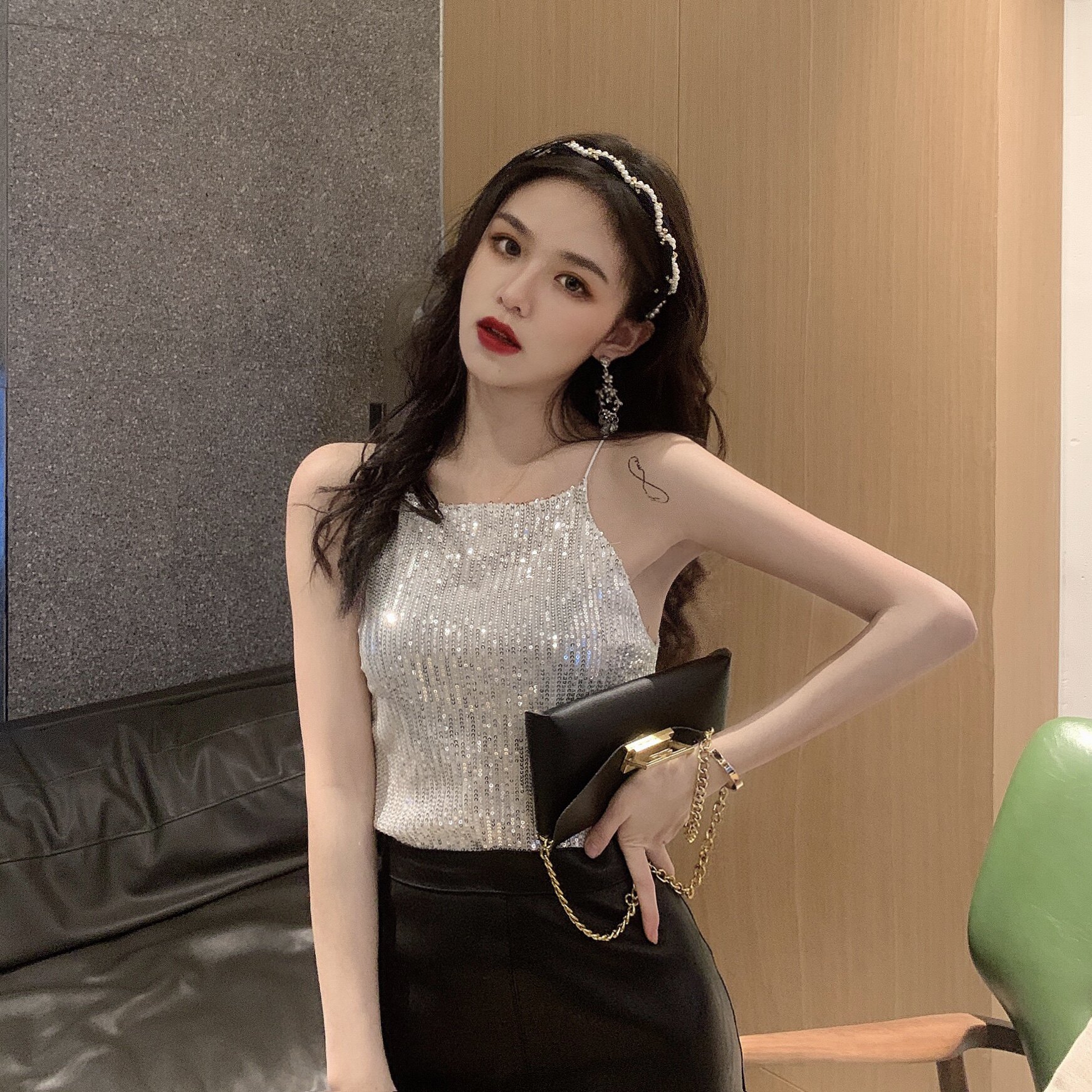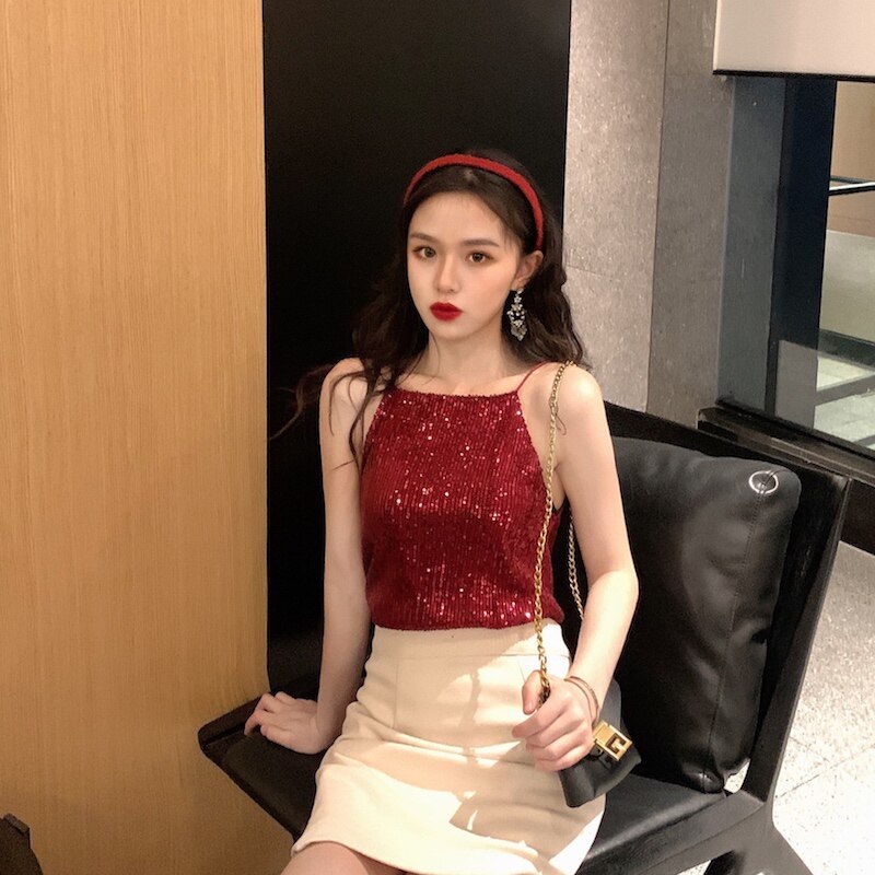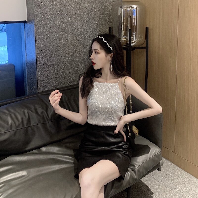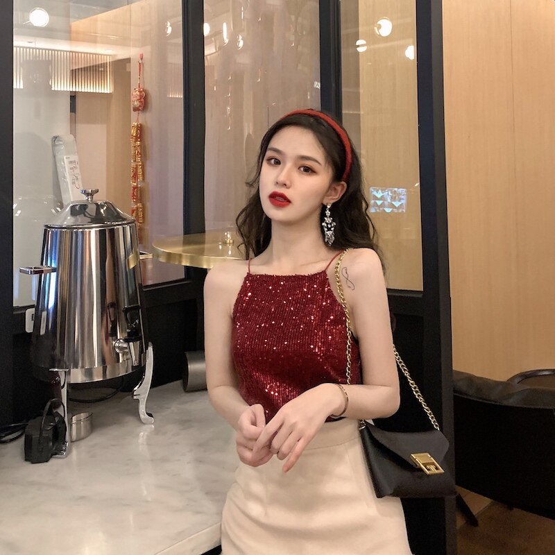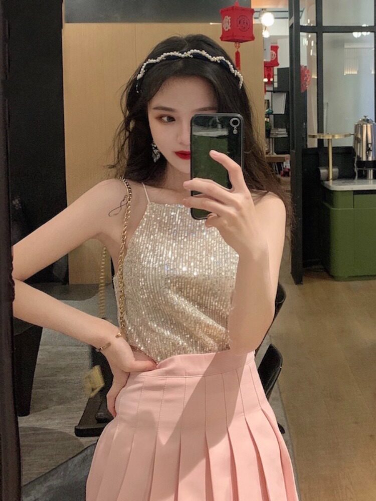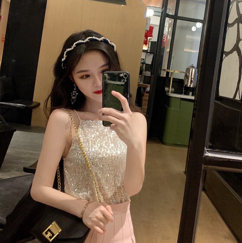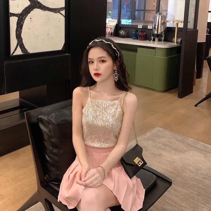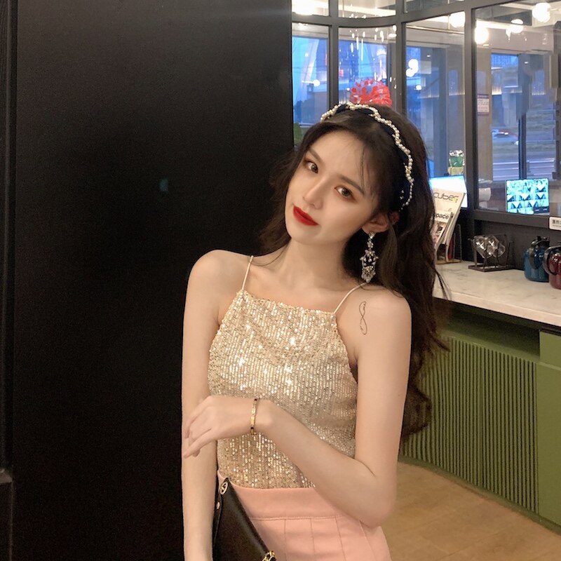 Сексуальные блестки для ногтей, топ с чашечками, майка топ, короткая базовая летняя одежда
