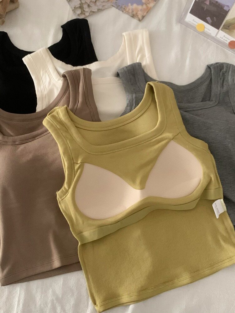 Бюстгалтер, топ с чашечками, весенняя удерживающая тепло базовая приятная телу майка топ, увеличенная толщина, для маленькой груди, тренд сезона