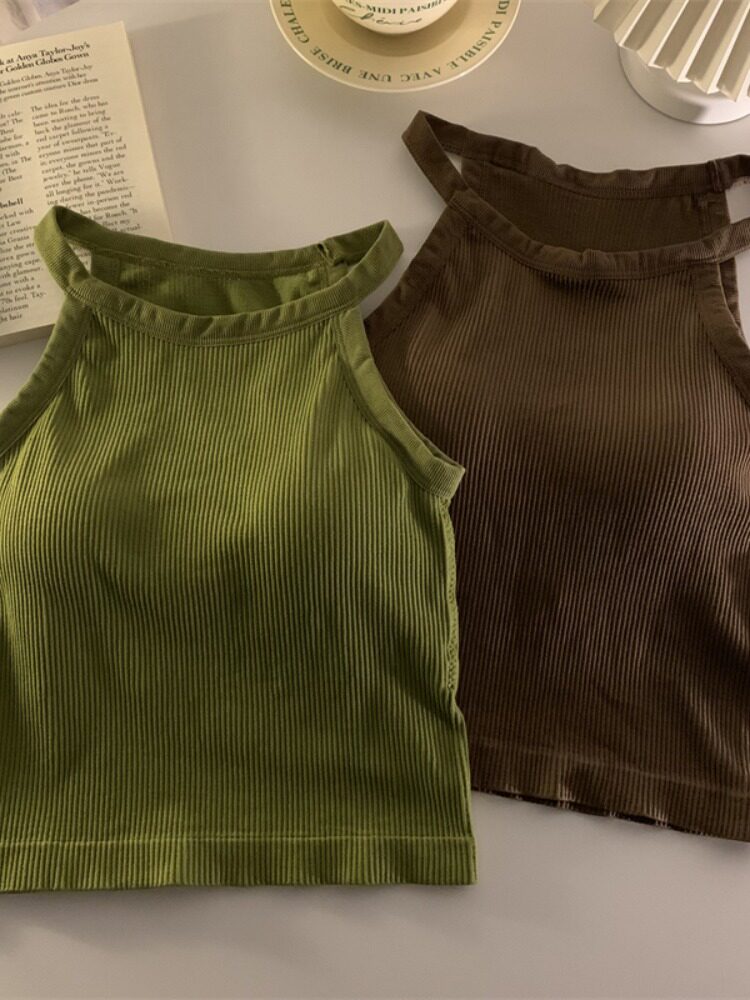 Сексуальная демисезонная майка топ без рукавов, базовый топ с чашечками, в корейском стиле
