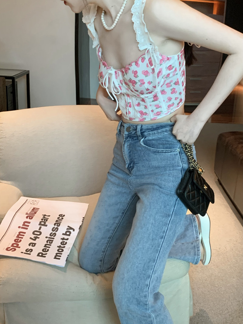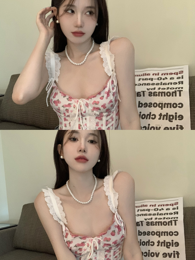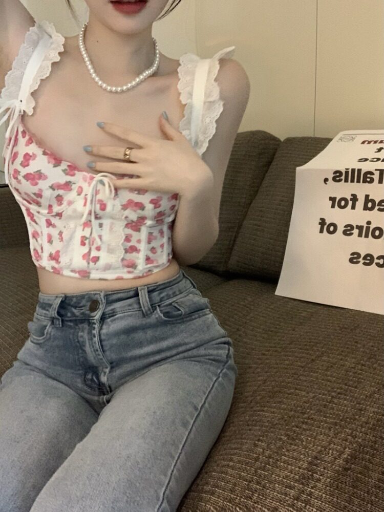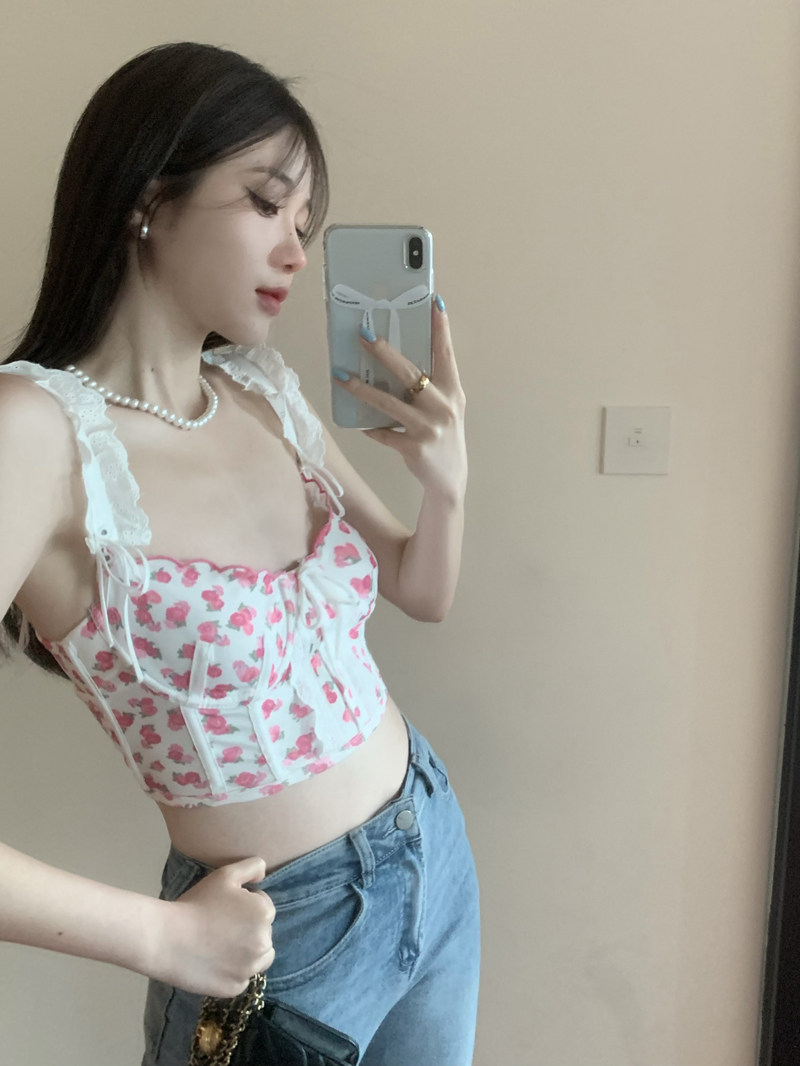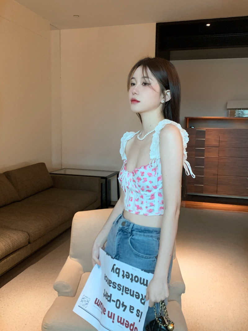 Кружевная сексуальная короткая майка топ, цветочный принт