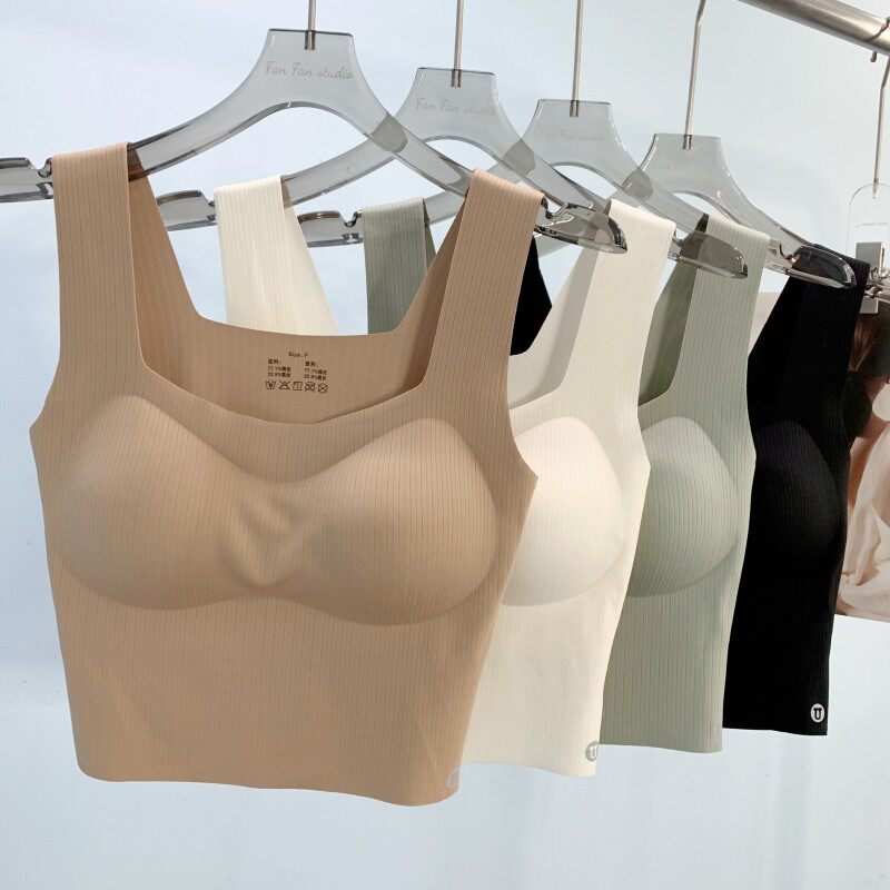 Майка топ, цветной топ с чашечками, квадратный вырез, длина миди, в корейском стиле, простой и элегантный дизайн, красивая спина, эффект подтяжки