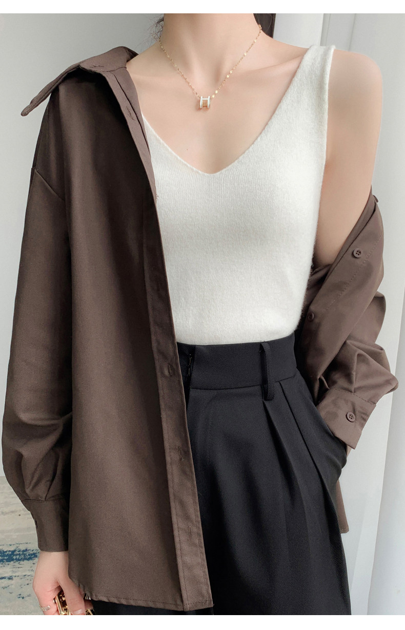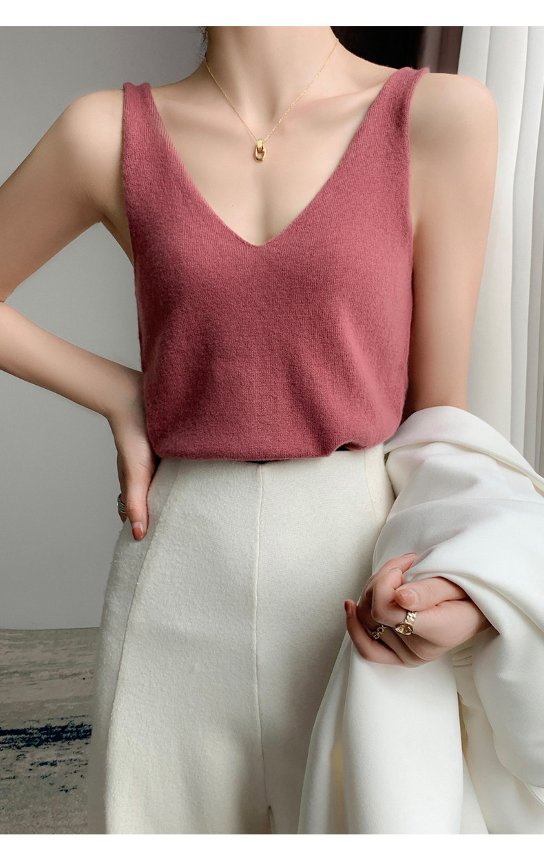 Шерстяной жилет, трикотажные штаны, рубашка, кашемировая утепленный лонгслив, свитер, облегающий крой, эффект подтяжки, V-образный вырез