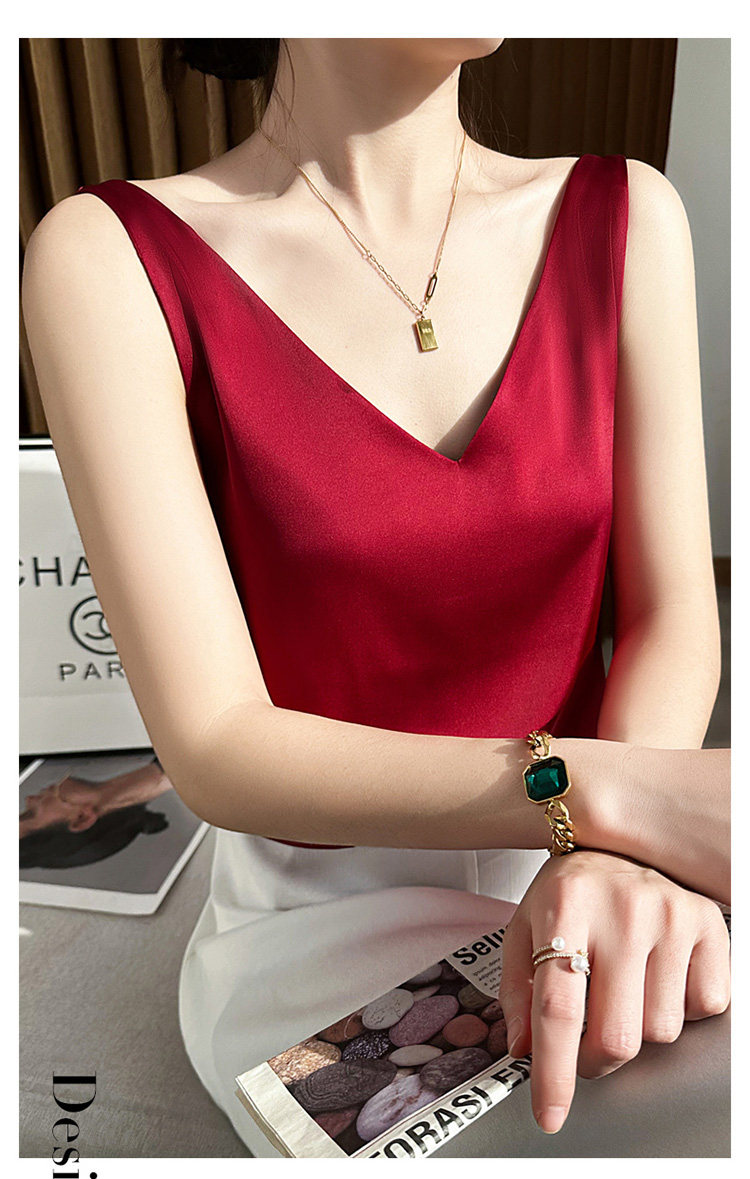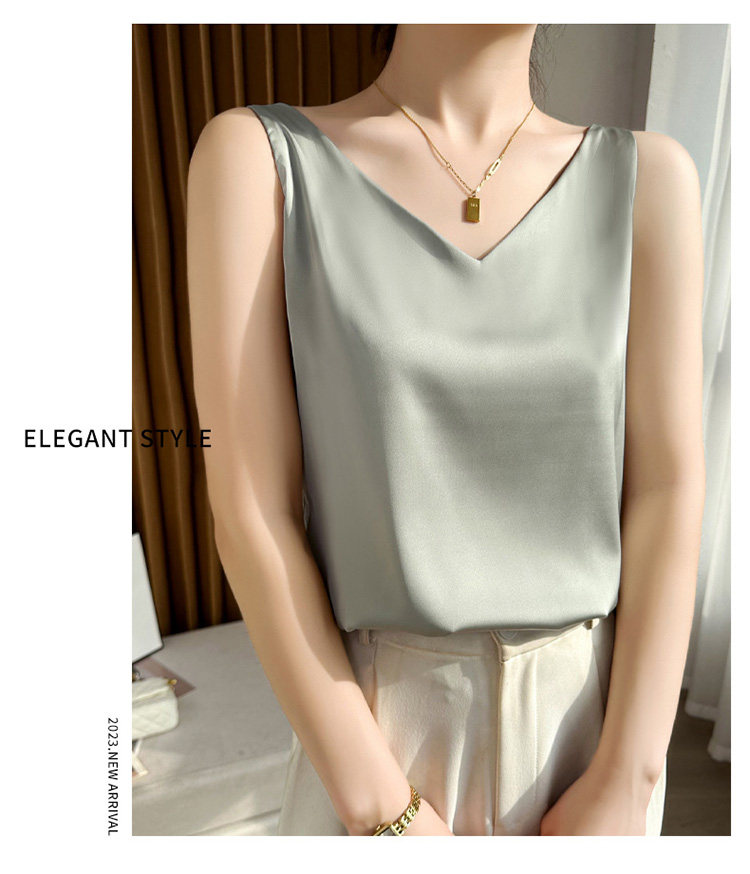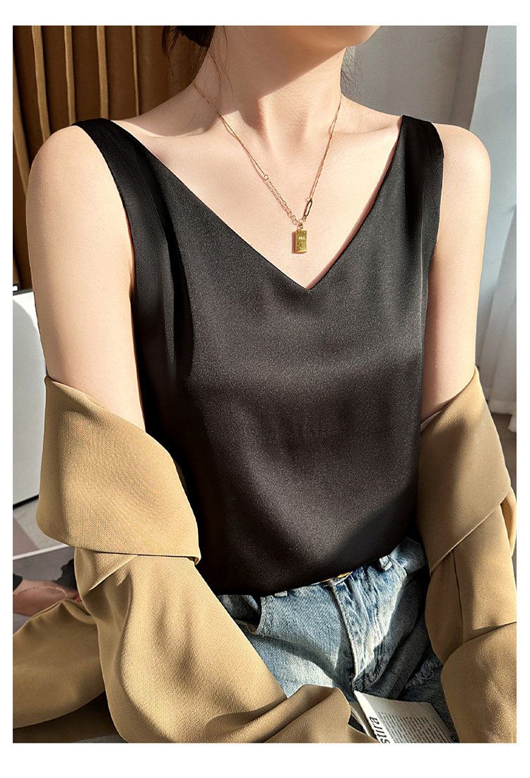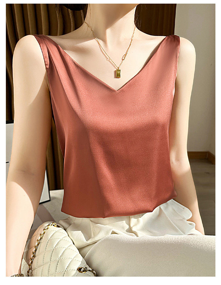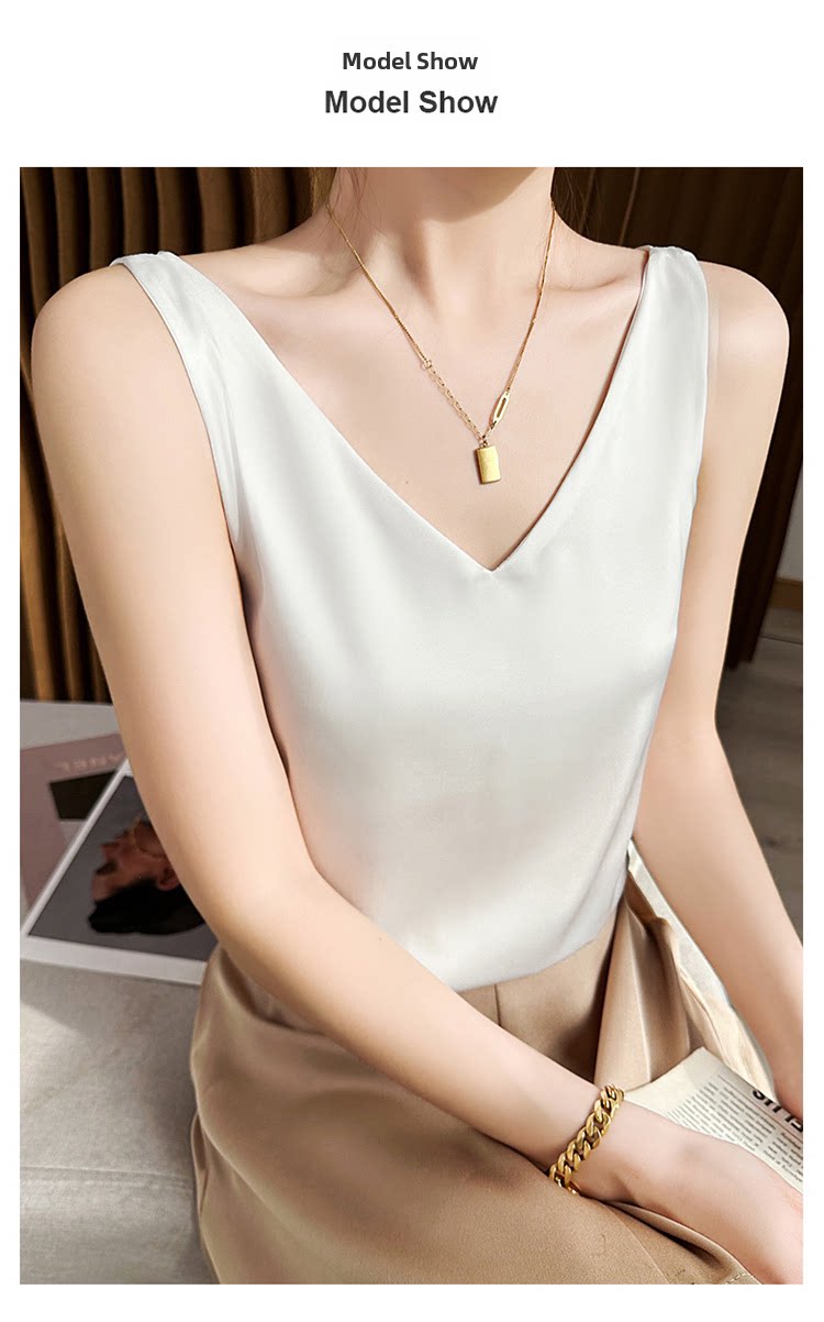 Летний шелковый топ с чашечками, базовый приятный телу пиджак классического кроя без рукавов, V-образный вырез, оверсайз