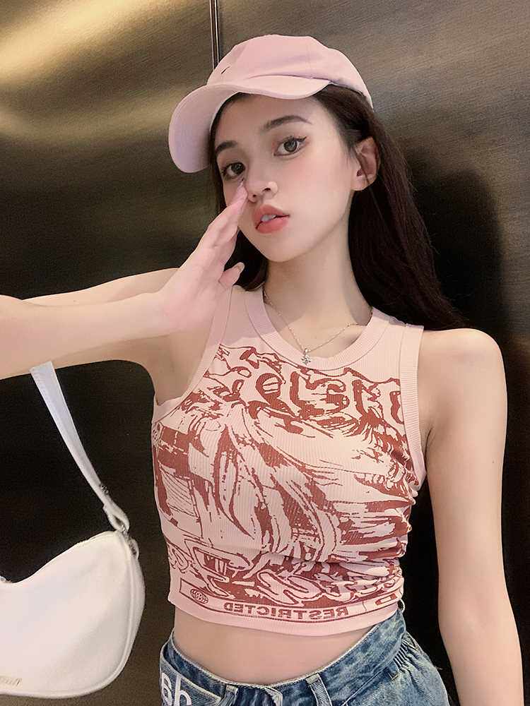 Ретро бюстгальтер-топ, летняя розовая короткая спортивная майка без рукавов, в американском стиле, эффект подтяжки