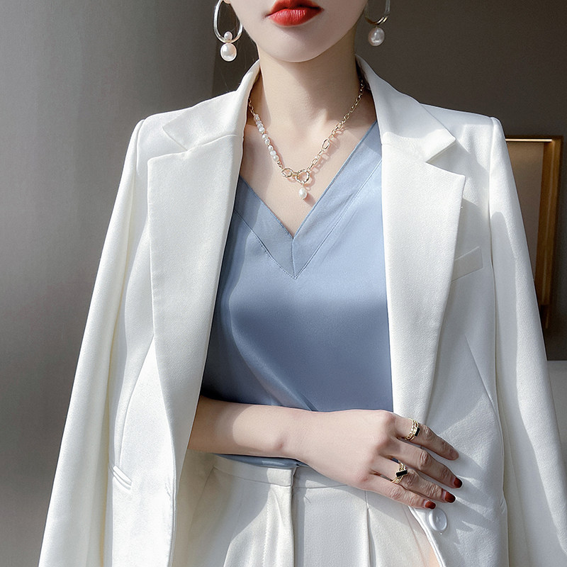 Кружевная шелковая майка топ, модный базовый белый костюм, V-образный вырез, в западном стиле, большой размер