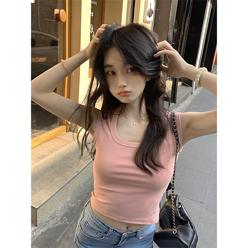 Цветной осенний приталенный короткий базовый топ с чашечками, в корейском стиле