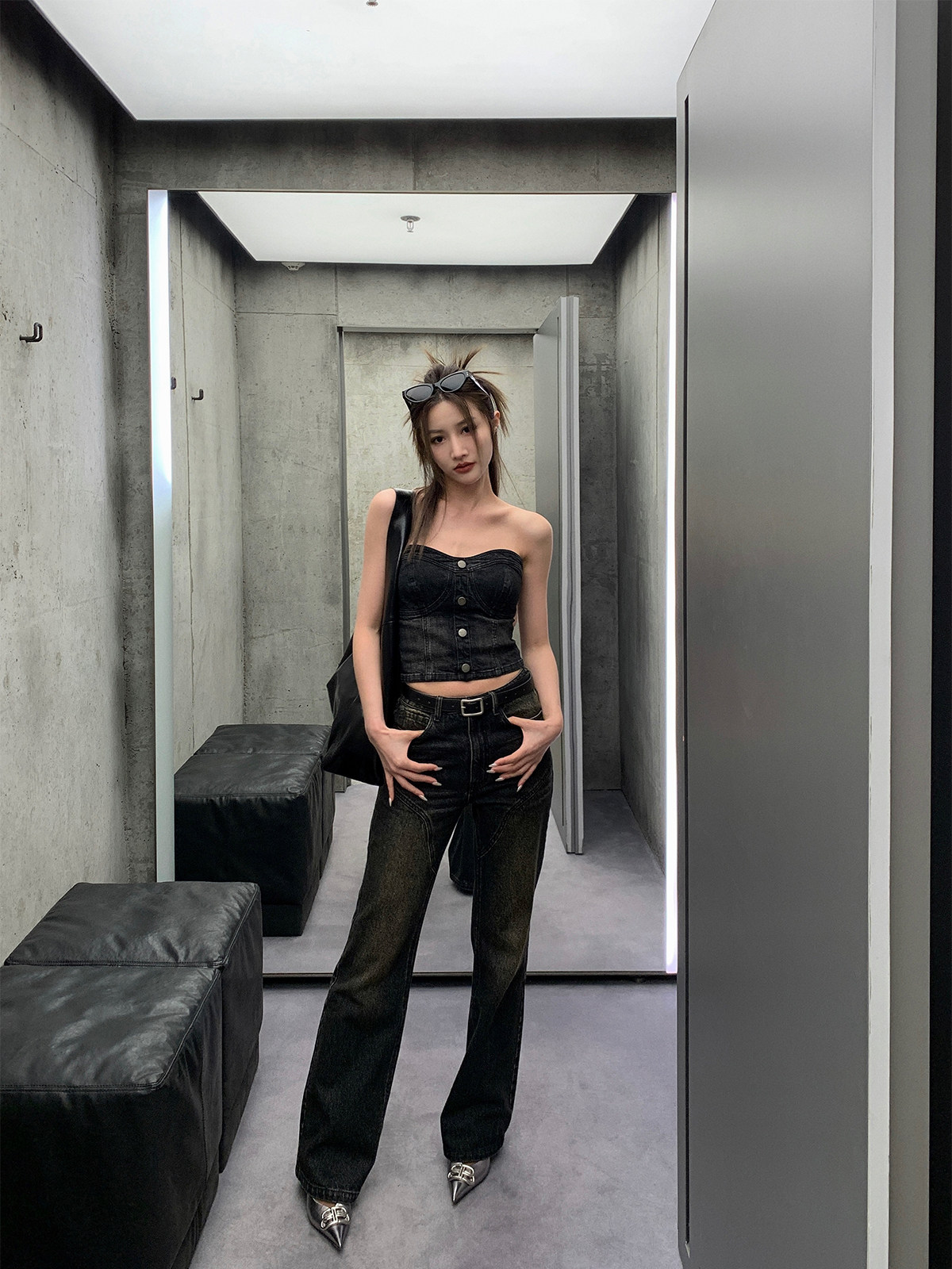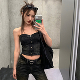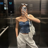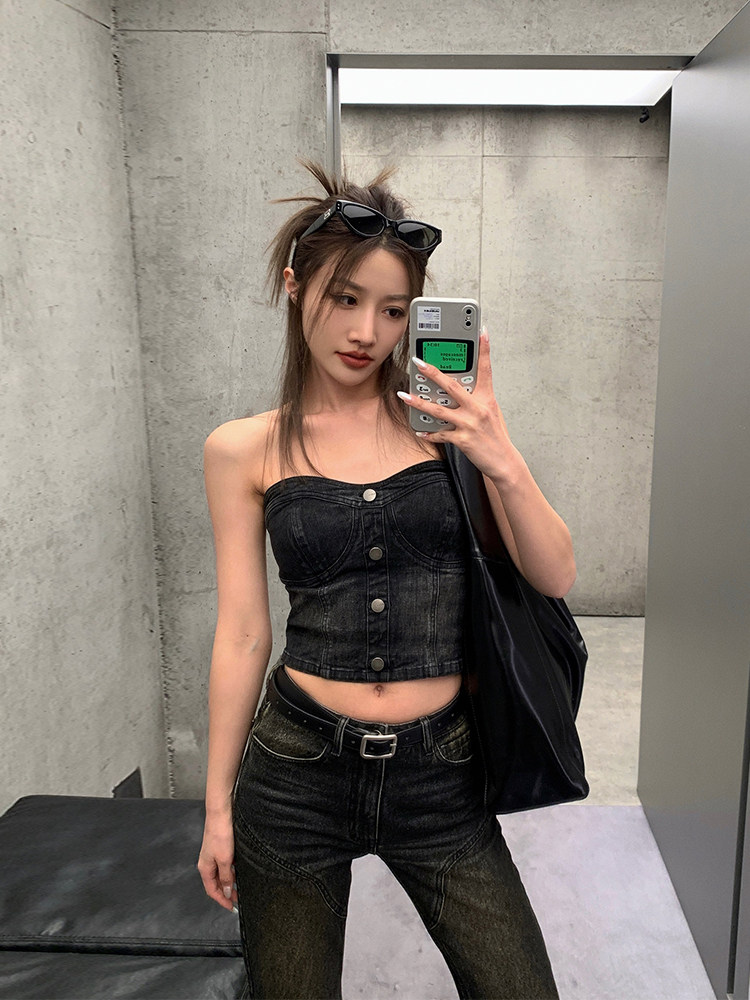 Летний джинсовый топ без лямок, облегающий крой